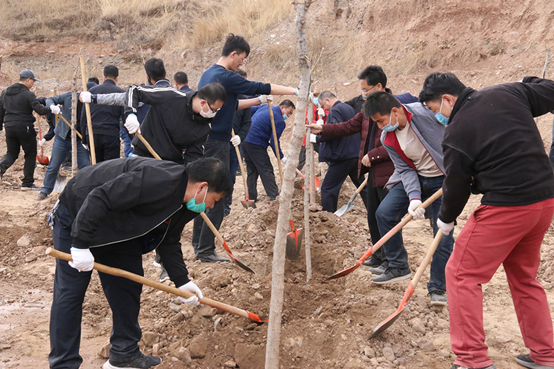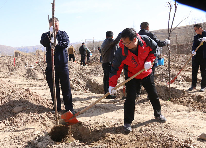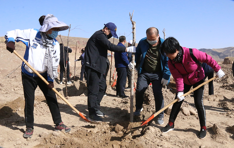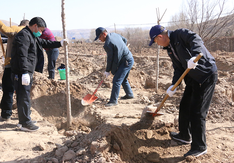 春風(fēng)吹拂處,新綠綻枝頭。為深入學(xué)習(xí)貫徹習(xí)近平總書(shū)記視察甘肅的重要講話和批示精神,認(rèn)真踐行綠水青山就是金山銀山的發(fā)展理念,實(shí)施綠色發(fā)展戰(zhàn)略,進(jìn)一步加強(qiáng)祁連山生態(tài)環(huán)境保護(hù)與治理,幫助幫扶鎮(zhèn)打贏脫貧攻堅(jiān)戰(zhàn),實(shí)施鄉(xiāng)村振興戰(zhàn)略,4月9日,學(xué)院領(lǐng)導(dǎo)班子成員、幫扶干部、駐村干部及部分教職工70多人深入結(jié)對(duì)幫扶鎮(zhèn)——黑松驛鎮(zhèn)開(kāi)展義務(wù)植樹(shù)活動(dòng),建設(shè)“生態(tài)示范林”。春光沐浴的祁連山腳下黑松驛鎮(zhèn),春意盎然,生機(jī)勃勃,正是植樹(shù)好時(shí)節(jié)。廣大教職工一下車(chē)就拿起鐵鍬到植樹(shù)現(xiàn)場(chǎng),與黑松驛鎮(zhèn)政府部分干部一起投入植樹(shù)活動(dòng),按照“橫看直線側(cè)一線、三埋兩踩一提苗”的技術(shù)要求,三人一組,分工協(xié)作,有序配合,揮鍬培土、扶苖踩土、圍堰澆水,現(xiàn)場(chǎng)一派熱火朝天的勞動(dòng)景象。當(dāng)天植樹(shù)育林約20余畝,一棵棵新栽的樹(shù)苗整齊排列,迎風(fēng)挺立。通過(guò)義務(wù)植樹(shù),廣大教職工用實(shí)際行動(dòng)傳播著生態(tài)文明、綠色發(fā)展理念,切實(shí)幫助幫扶鎮(zhèn)綠起來(lái),美起來(lái),富起來(lái)。