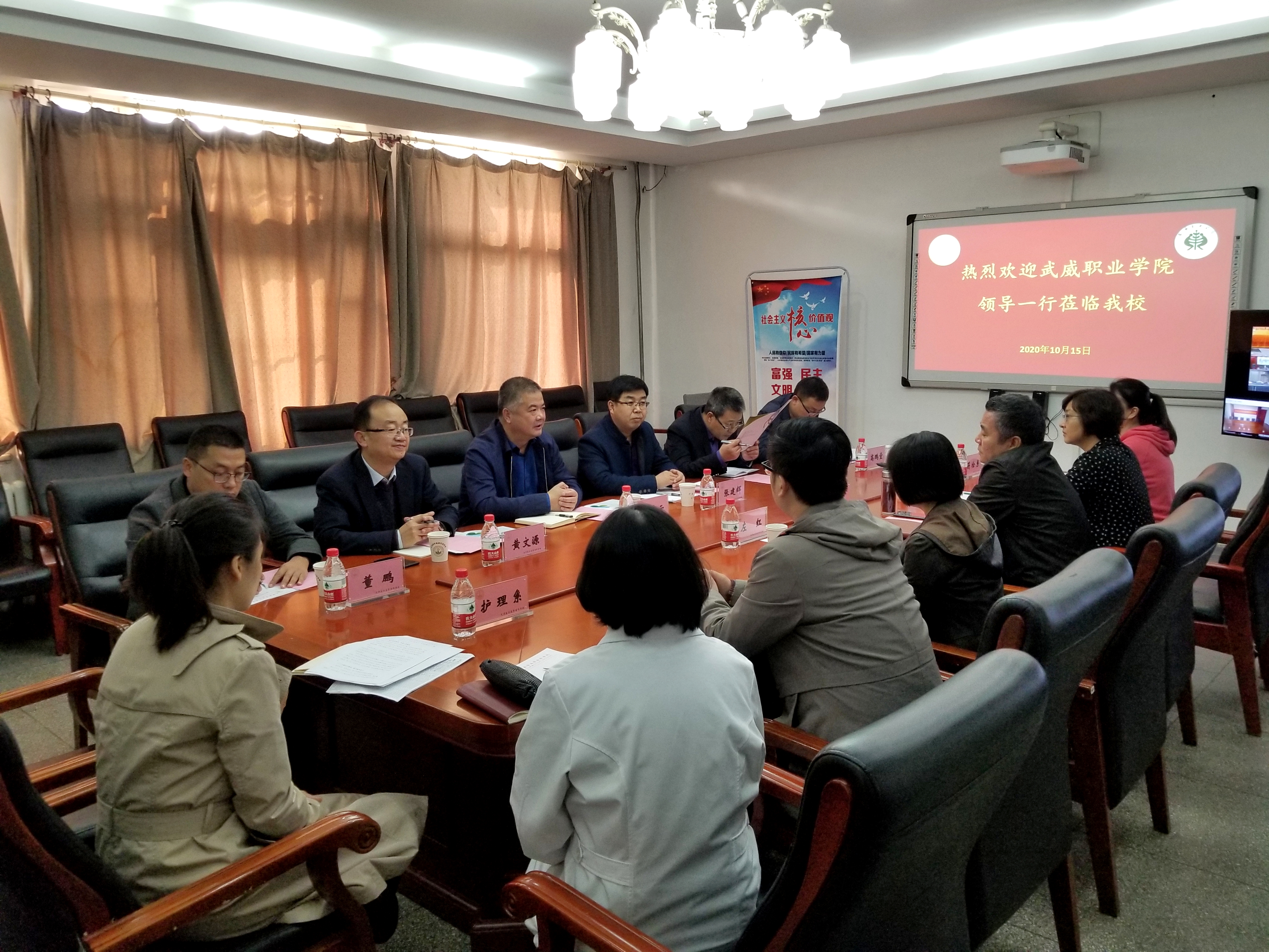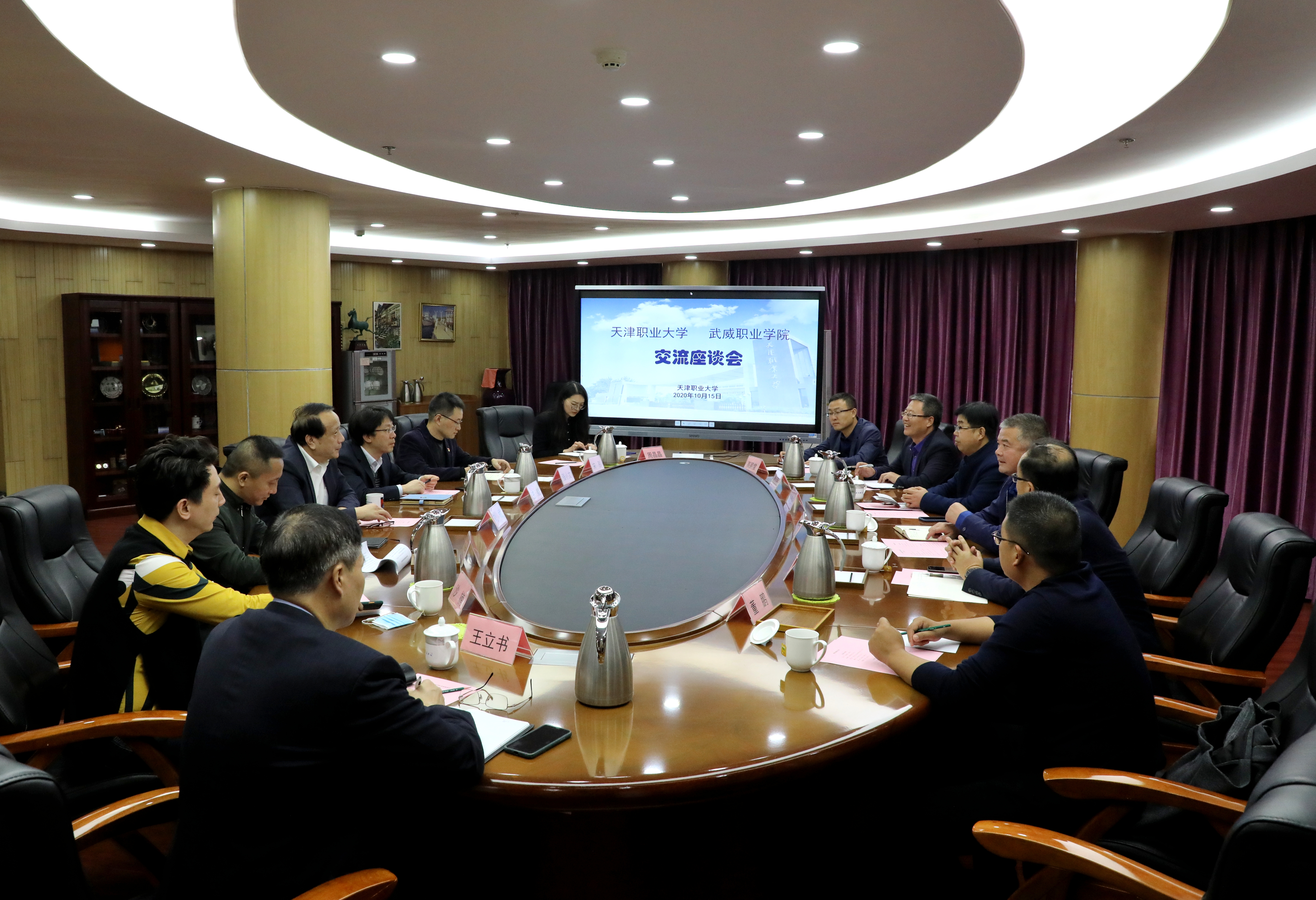 考察組一行分別與天津醫(yī)學高等??茖W校、天津職業(yè)大學進行了深入交流座談。天津醫(yī)高專是國家雙高校中唯一一所衛(wèi)生類學校,在座談會上,醫(yī)高專為學院醫(yī)藥衛(wèi)生類專業(yè)群建設(shè)提出了指導意見,介紹了醫(yī)高?!?.5+1.5”學制安排促就業(yè)、教學系黨委行政雙組長抓就業(yè)、就業(yè)工作經(jīng)費動態(tài)調(diào)整引領(lǐng)就業(yè)的工作機制,并就下一步共同培養(yǎng)師資、互派青年骨干教師交流學習達成共識。天津職業(yè)大學是《天津—甘肅職業(yè)教育協(xié)作實施方案》合作院校,在天津職大座談會上,兩校圍繞專業(yè)群組群、產(chǎn)業(yè)學院組建模式、教學模式、探索產(chǎn)業(yè)學院建設(shè)、混合所有制二級學院建設(shè)、就業(yè)工作“一對一”模式、學生管理經(jīng)驗和成果進行了分享與交流。劉斌校長出席并主持會議,對學院的雙高建設(shè)給予了特別關(guān)心與指導。他希望,雙方作為兄弟院校,要進一步加強交流合作,努力為推動東西協(xié)作和武威職業(yè)教育高質(zhì)量發(fā)展做出新的更大的貢獻。