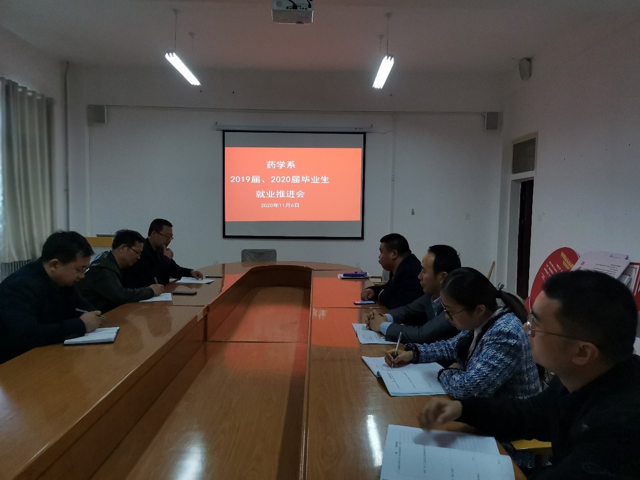 2020年11月6日,藥學(xué)系2020屆畢業(yè)生就業(yè)推進會在尚德樓408召開,學(xué)院黨委委員、副院長張開禮,藥學(xué)系黨總支書記、主任魏潤明,藥學(xué)系副主任楊建美及班主任參加會議。
