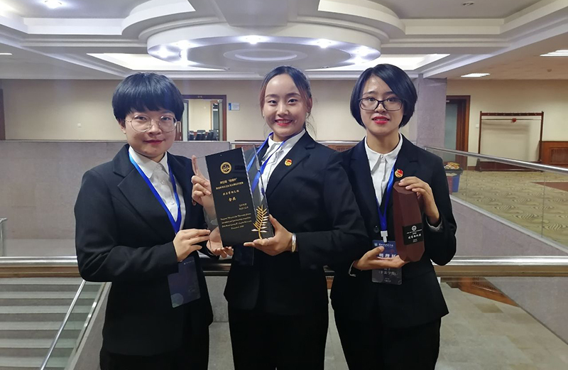 在上午進行的初賽中,非法學組共有13個學校參加,前八名進入決賽。我院三位選手在與兄弟學校的激烈角逐下,脫穎而出,以小組賽第二名、初賽第四名的成績輕松進入決賽。下午的決賽中,面對更強大的對手,面對評委老師,三位選手始終面帶笑容、自信滿滿、密切配合,憑自己的努力、實力,發(fā)揮出她們的最好水平,個人答題毫無破綻、搶答過程頻頻得手、個人論述聲情并茂,獲得了評委的高度贊賞。經(jīng)過激烈的比拼,我院代表隊一路披荊斬棘,過關(guān)斬將,最終獲得非法學組金獎(第一名),學院獲優(yōu)秀組織獎,羅茜獲得個人優(yōu)秀選手獎。