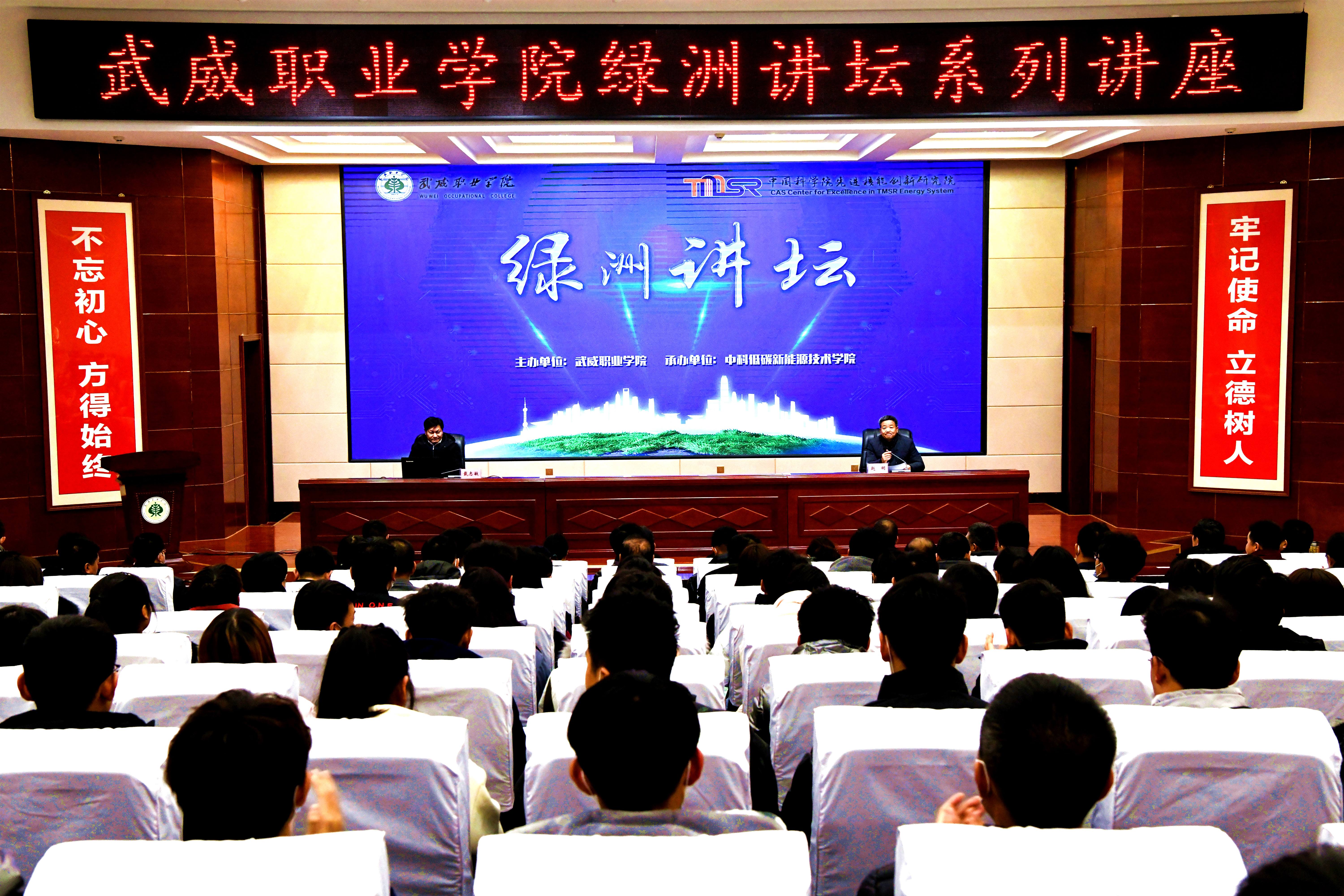 ?12月16日下午,中國科學院上海應用物理研究所所長戴志敏蒞臨學院綠洲講壇,在大學生活動中心菁英廳為師生做了題為《先進核能及其綜合運用》的專題報告。中國科學院上海應用物理研究所副所長、中科武威所主任賀戰(zhàn)軍,中國科學院先進核能創(chuàng)新研究院高級教育顧問、中科低碳新能源技術學院院長楊存忠教授,中國科學院先進核能創(chuàng)新研究院副研究員、中科低碳新能源技術學院院長助理米麗娟博士,中國科學院建安總體副負責人、武威分部綜合管理辦副主任趙先堂,中國科學院上海應用物理研究所建安技術部副主任、中科武威所副主任李超出席報告會。學院在家院領導、全體中層管理干部和師生代表共220人聆聽了報告會。報告會由學院黨委書記、院長趙明主持。