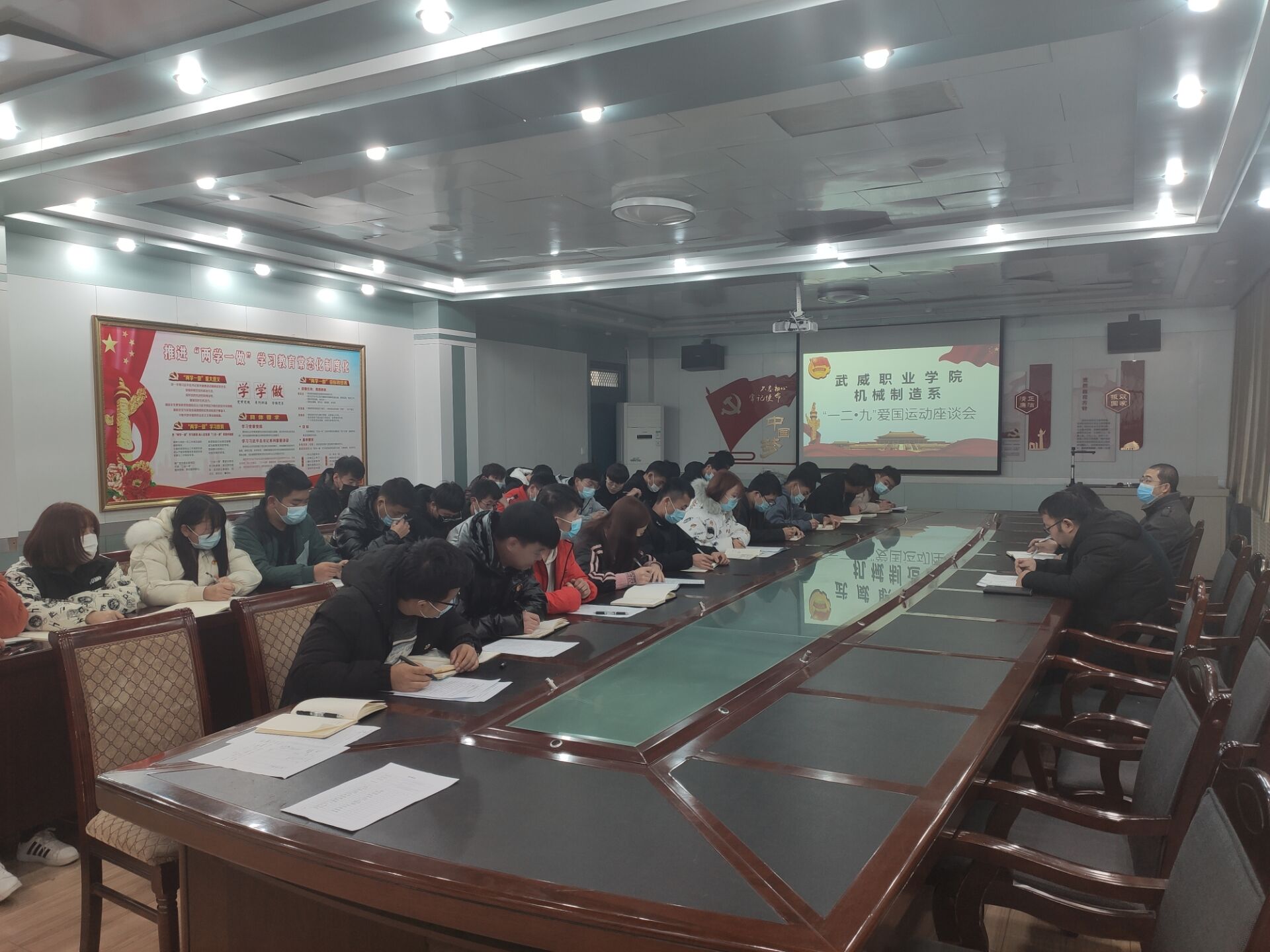 為了紀(jì)念“一二·九”愛國(guó)運(yùn)動(dòng),我系于2020年12月9日,在博學(xué)樓二樓黨員活動(dòng)室召開了武威職業(yè)學(xué)院機(jī)械制造系“一二·九”愛國(guó)運(yùn)動(dòng)座談會(huì),參會(huì)人員有大二團(tuán)學(xué)委員會(huì)全體成員以及18級(jí)、19級(jí)、20級(jí)各班團(tuán)支書。