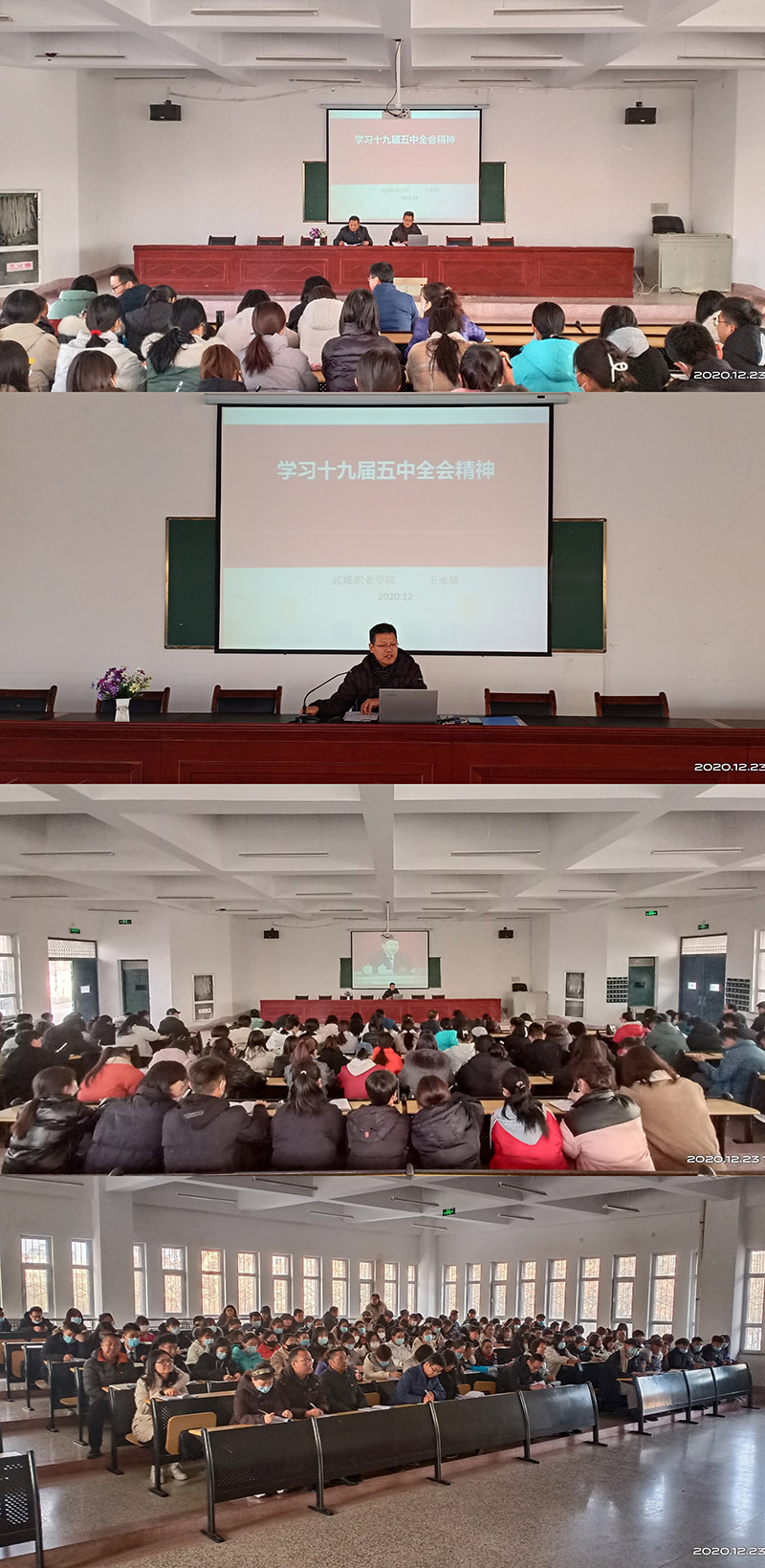 為深入學習貫徹落實黨的第十九屆五中全會精神,12月23日下午,學院黨委委員、副院長王永緒同志在明德樓北側(cè)報告廳為電子信息工程系、護理系全體教師和學生入黨積極分子、團學干部代表以黨的十九屆五中全會精神為主題講專題黨課。