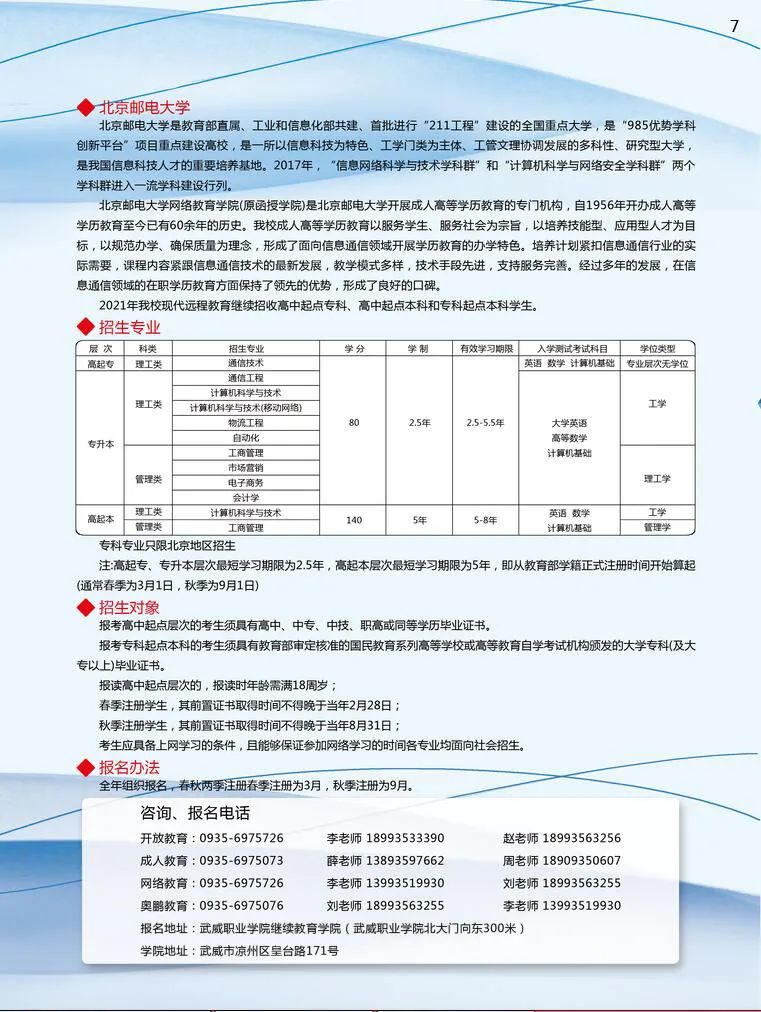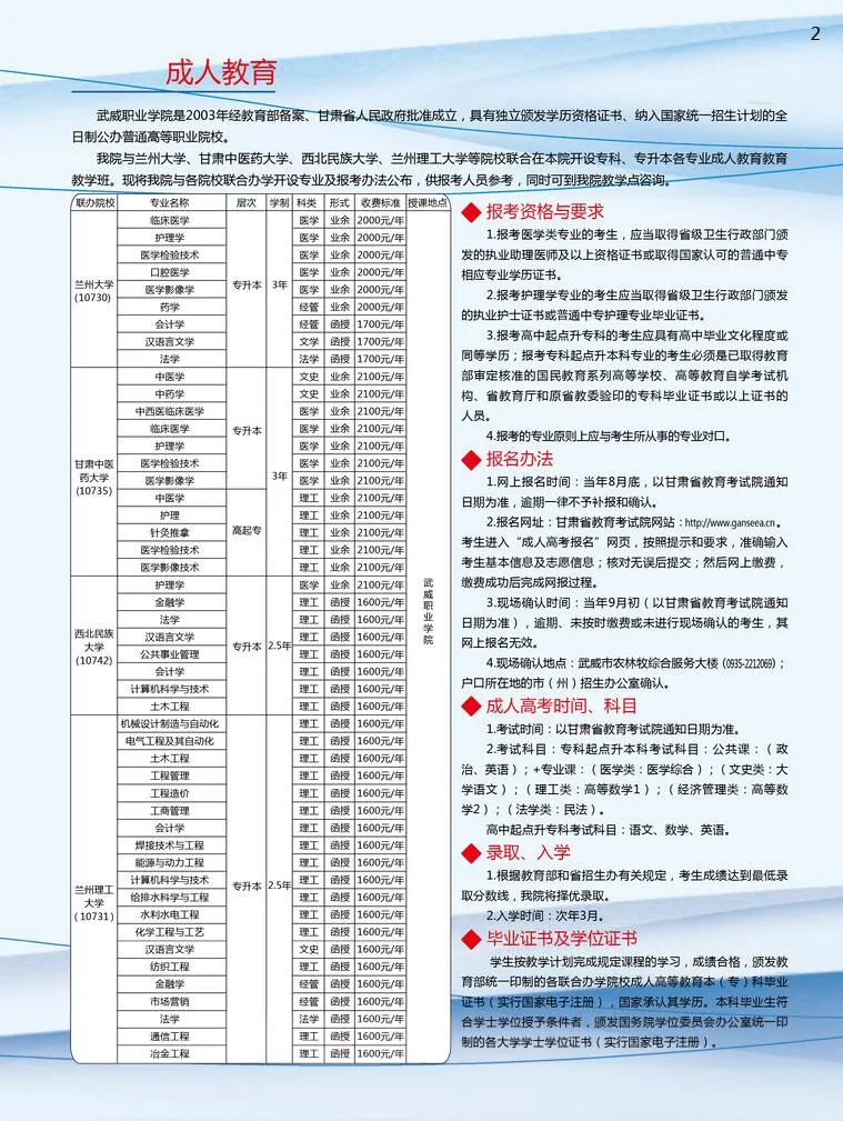 武威職業(yè)學院繼續(xù)教育學院2021年招生簡章