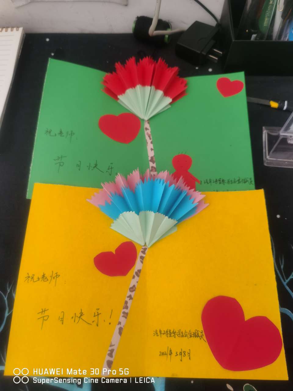 ? 3月8日上午,利用課間休息時(shí)間,汽車工程系學(xué)生通過(guò)贈(zèng)送自制小賀卡、每人一句祝福語(yǔ)等形式為女教師們獻(xiàn)上了節(jié)日的祝福。