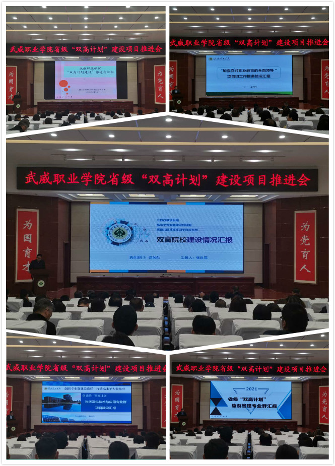 黨委書記、院長趙明在講話中指出,習(xí)近平總書記的重要指示和李克強總理的批示,為我們奮力構(gòu)建高質(zhì)量職業(yè)教育體系指明了方向。學(xué)院成功入選省級“雙高計劃”建設(shè)單位,是學(xué)院發(fā)展歷程上的又一里程碑,為學(xué)院高質(zhì)量發(fā)展注入了新動能,帶來了新機遇。我們既為前期工作成效感到欣喜,也要認(rèn)清當(dāng)前形勢和未來發(fā)展的壓力與緊迫感,抓住這次契機,提升自身硬實力和軟實力。在未來幾年,把“雙高計劃”建設(shè)作為學(xué)院的中心工作和改革發(fā)展的政治任務(wù)。他提出五點工作要求,一是要充分發(fā)揮黨組織的戰(zhàn)斗堡壘作用。以習(xí)近平新時代中國特色社會主義思想為指導(dǎo),加強黨對“雙高計劃”建設(shè)項目的全面領(lǐng)導(dǎo),以一流黨建引領(lǐng)高水平建設(shè),切實把黨建工作與項目建設(shè)同部署、同落實、同考評。二是要加強領(lǐng)導(dǎo),強化責(zé)任?!半p高計劃”的建設(shè)不能寫在紙上,講在嘴上,而要落實在行動上,所有領(lǐng)導(dǎo)干部要提高擔(dān)當(dāng)意識、服務(wù)意識、發(fā)展意識,立足當(dāng)前,著眼長遠(yuǎn),攻難克堅,為學(xué)?!半p高”建設(shè)做貢獻(xiàn)。三是要加強融合,提升工作效能。將“雙高計劃”建設(shè)與提質(zhì)培優(yōu)、技能甘肅等重點工作融入日常,同步謀劃、一體推進(jìn),確保項目建設(shè)有序進(jìn)行。對標(biāo)國家高水平院校和高水平專業(yè)群進(jìn)行高標(biāo)準(zhǔn)謀劃,完善高水平成果培育機制,主動提標(biāo)、自我加壓,持續(xù)發(fā)力、持續(xù)攻堅,形成更多更好的成果。四是要改革創(chuàng)新,加強績效管理。進(jìn)一步加強制度建設(shè),持續(xù)創(chuàng)新管理體系、完善管理制度、創(chuàng)新管理辦法,規(guī)范辦事流程,完善績效考核辦法,切實增強績效考核的導(dǎo)向性、方向性、引領(lǐng)性,激發(fā)廣大教職員工參與“雙高計劃”建設(shè)的積極性、主動性。五是健全督導(dǎo)機制,加強監(jiān)管。通過開展定期或不定期、形式多樣的督查工作,切實加強管理,推動任務(wù)落實。
