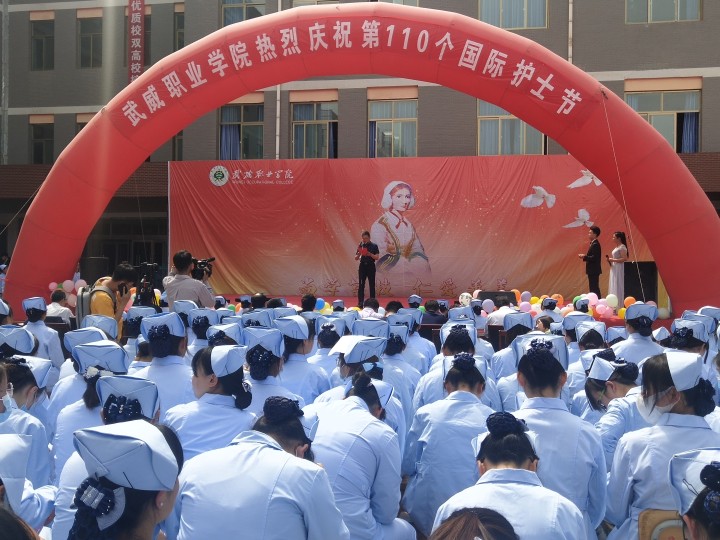 在第110個(gè)國(guó)際護(hù)士節(jié)到來(lái)之際,為慶祝中國(guó)共產(chǎn)黨百年華誕,繼承和弘揚(yáng)南丁格爾救死扶傷的人道主義精神和為護(hù)理事業(yè)無(wú)私奉獻(xiàn)的高尚品質(zhì),強(qiáng)化我院護(hù)生職業(yè)理念和使命擔(dān)當(dāng),推動(dòng)我院護(hù)理事業(yè)不斷向前發(fā)展,助力學(xué)院“雙高”建設(shè),5月11日下午,學(xué)院在明遠(yuǎn)樓北廣場(chǎng)舉辦5.12國(guó)際護(hù)士節(jié)慶?;顒?dòng)。學(xué)院副院長(zhǎng)王永緒、張開禮、武威市區(qū)部分實(shí)習(xí)醫(yī)院護(hù)理部、科教科負(fù)責(zé)人及學(xué)院相關(guān)處室領(lǐng)導(dǎo)出席本次活動(dòng),護(hù)理系師生1600余人參加了本次活動(dòng)。