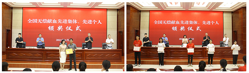 儀式上,與會領(lǐng)導(dǎo)為武威市2018-2019年度全國無償獻(xiàn)血先進(jìn)集體和個(gè)人獲得者頒獎(jiǎng)。我院被評為全國無償獻(xiàn)血促進(jìn)獎(jiǎng)單位獎(jiǎng),有13名師生榮獲全國無償獻(xiàn)血志愿服務(wù)獎(jiǎng)。