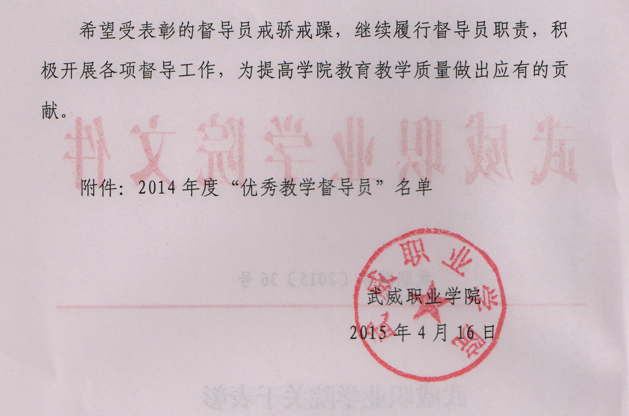 關(guān)于表彰2014年度“優(yōu)秀教學(xué)督導(dǎo)員”的決定