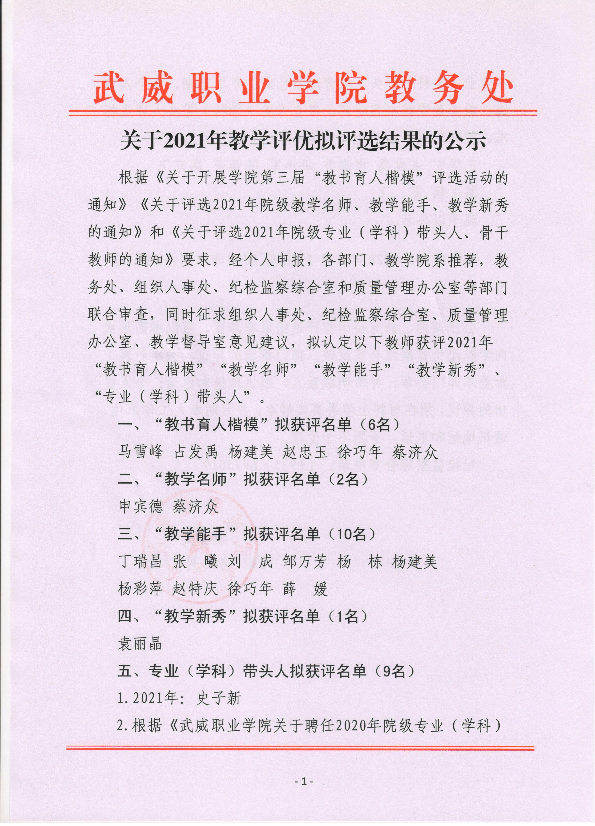 關于教學評優(yōu)擬評選結(jié)果的公示
