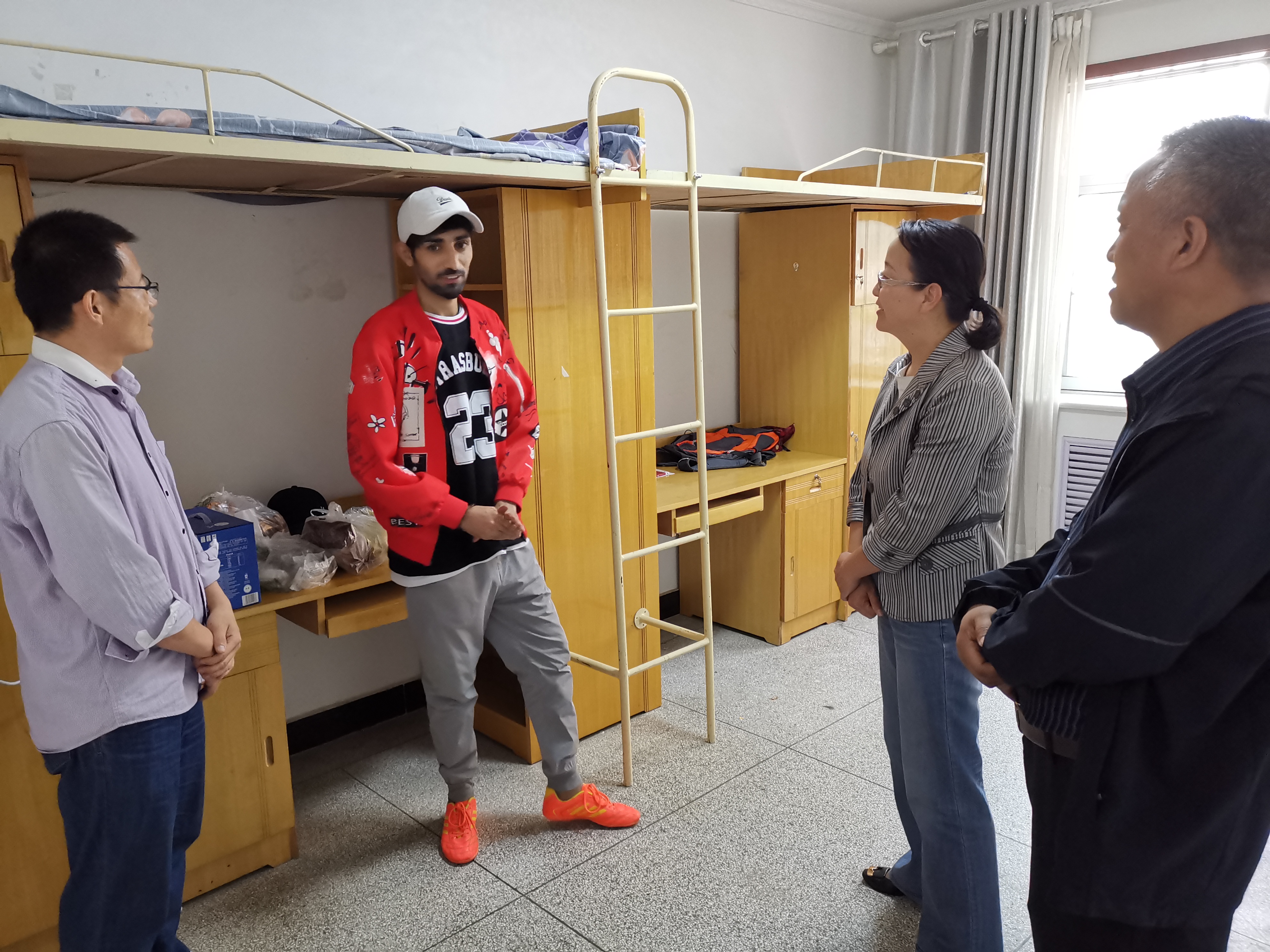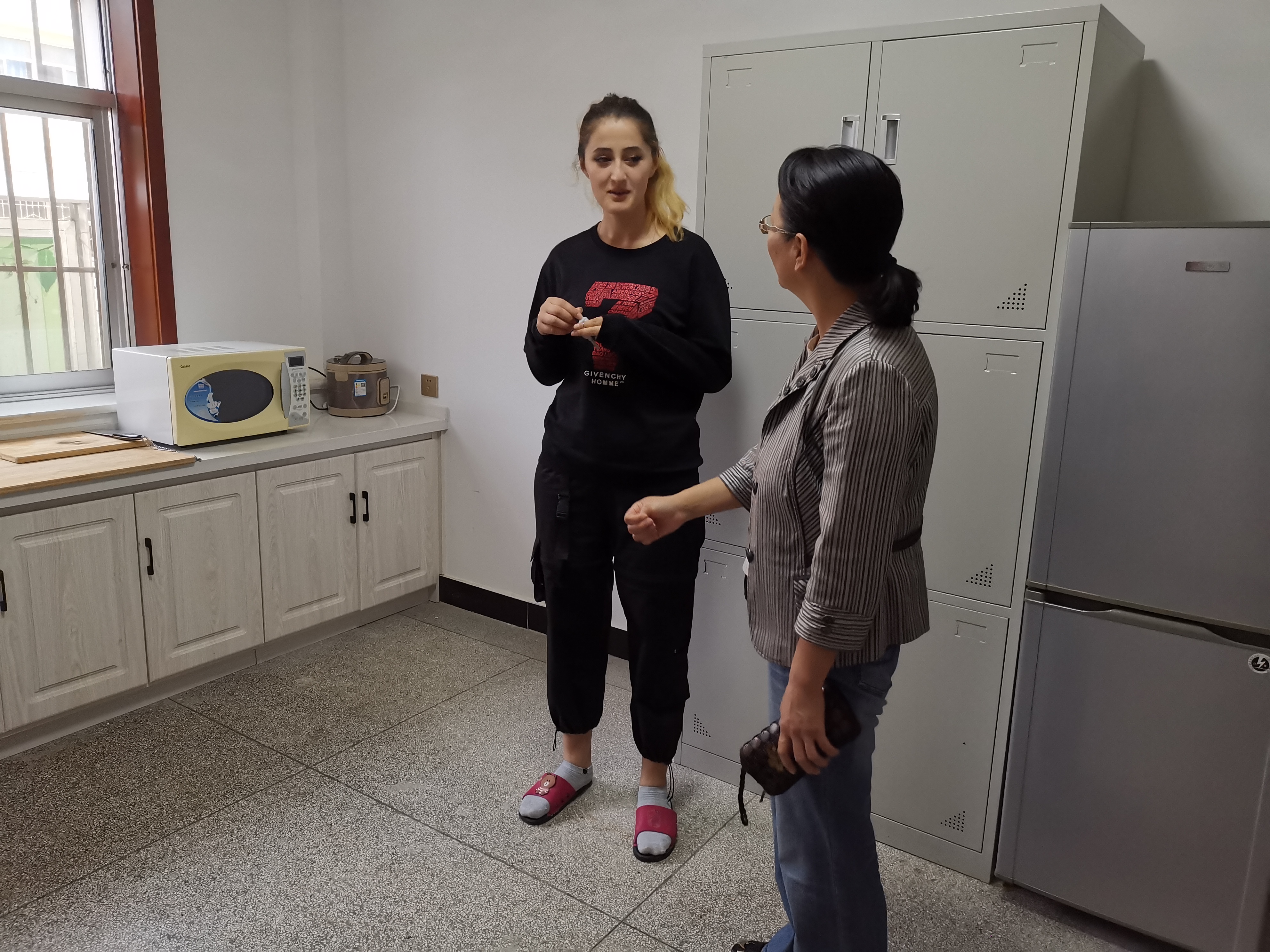 田迎春先后深入2019級(jí)、2021級(jí)來華留學(xué)生宿舍、廚房,查看、了解留學(xué)生住宿、生活情況,向留學(xué)生送上慰問品。在留學(xué)生宿舍,田迎春與留學(xué)生親切交談,關(guān)切詢問留學(xué)生日常生活、專業(yè)學(xué)習(xí)、漢語學(xué)習(xí)等情況。她向留學(xué)生簡(jiǎn)要介紹了中秋節(jié)、國(guó)慶節(jié)的來歷、風(fēng)俗及意義,留學(xué)生們對(duì)中國(guó)傳統(tǒng)文化表現(xiàn)出濃厚興趣;她指出,留學(xué)生背井離鄉(xiāng)來華求學(xué),遇到困難在所難免,但要堅(jiān)定信心,學(xué)院會(huì)盡力滿足留學(xué)生學(xué)習(xí)、生活的需要;她鼓勵(lì)留學(xué)生積極主動(dòng)融入學(xué)院大家庭,廣交朋友,在融入、融合過程中體會(huì)在華學(xué)習(xí)生活的樂趣;她希望留學(xué)生珍惜寶貴的來華學(xué)習(xí)的機(jī)會(huì),不僅要學(xué)好理論知識(shí),而且要學(xué)好操作技能,不僅要學(xué)好專業(yè)知識(shí),而且要學(xué)好優(yōu)秀中華文化,講好中國(guó)故事,向世界展示真實(shí)的中國(guó),爭(zhēng)做知華友華愛華的留學(xué)生,爭(zhēng)做中國(guó)與世界各國(guó)友好的使者。