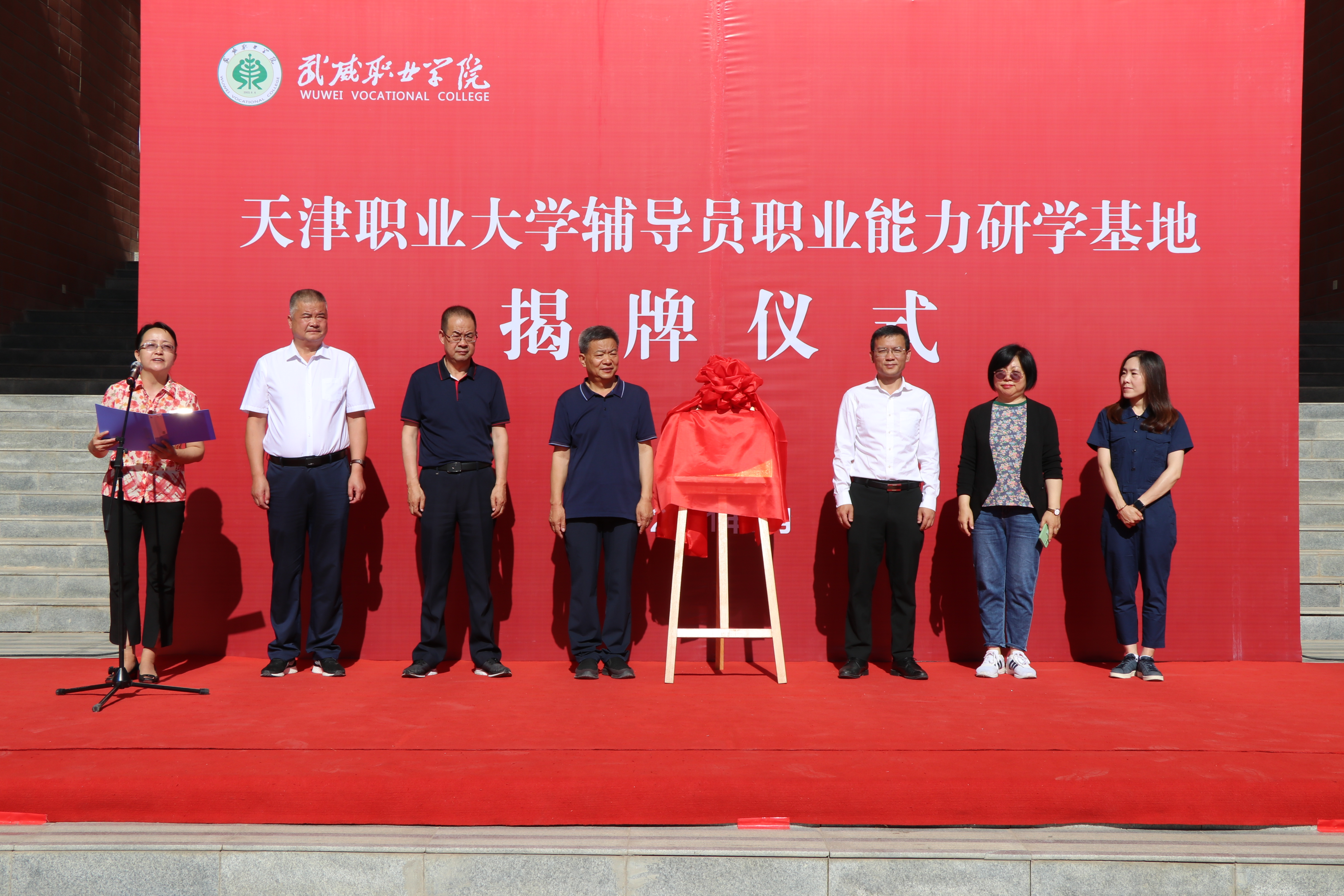 參觀結(jié)束后,在學(xué)生發(fā)展中心門口舉行天津職業(yè)大學(xué)輔導(dǎo)員職業(yè)能力研學(xué)基地揭牌儀式。天津職業(yè)大學(xué)與我院簽訂了《天津職業(yè)大學(xué)輔導(dǎo)員職業(yè)能力研學(xué)基地共建協(xié)議》,并互贈紀(jì)念品。通過研學(xué)基地共建,雙方相互借鑒在輔導(dǎo)員隊伍建設(shè)培養(yǎng)、學(xué)校德育工作的理念和做法,推進(jìn)高校輔導(dǎo)員隊伍建設(shè),加強(qiáng)兩校間深度合作,不斷提升育人質(zhì)量,構(gòu)建新時代的高校德育工作格局。