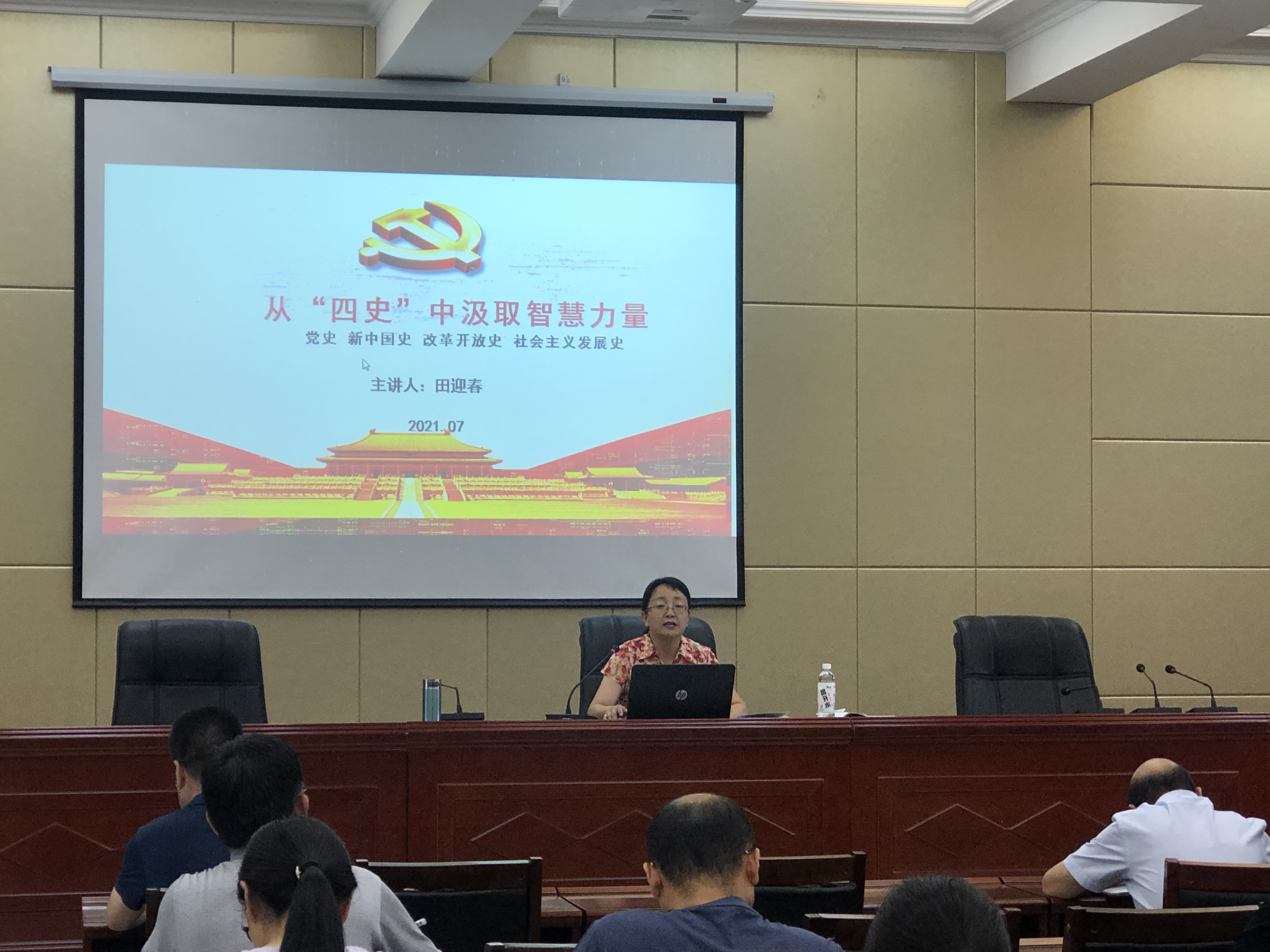 為進一步教育引導廣大黨員師生學史明理、學史增信、學史崇德、學史力行,推進黨史學習教育走深走實,7月8日,院黨委委員,副院長田迎春以“從四史中汲取智慧和力量”為題,向經(jīng)濟管理系黨總支、建筑工程系黨總支師生講了一堂精彩生動的黨課,黨課在行樹樓北側(cè)報告廳舉行,2系黨員師生80多人參加了學習。