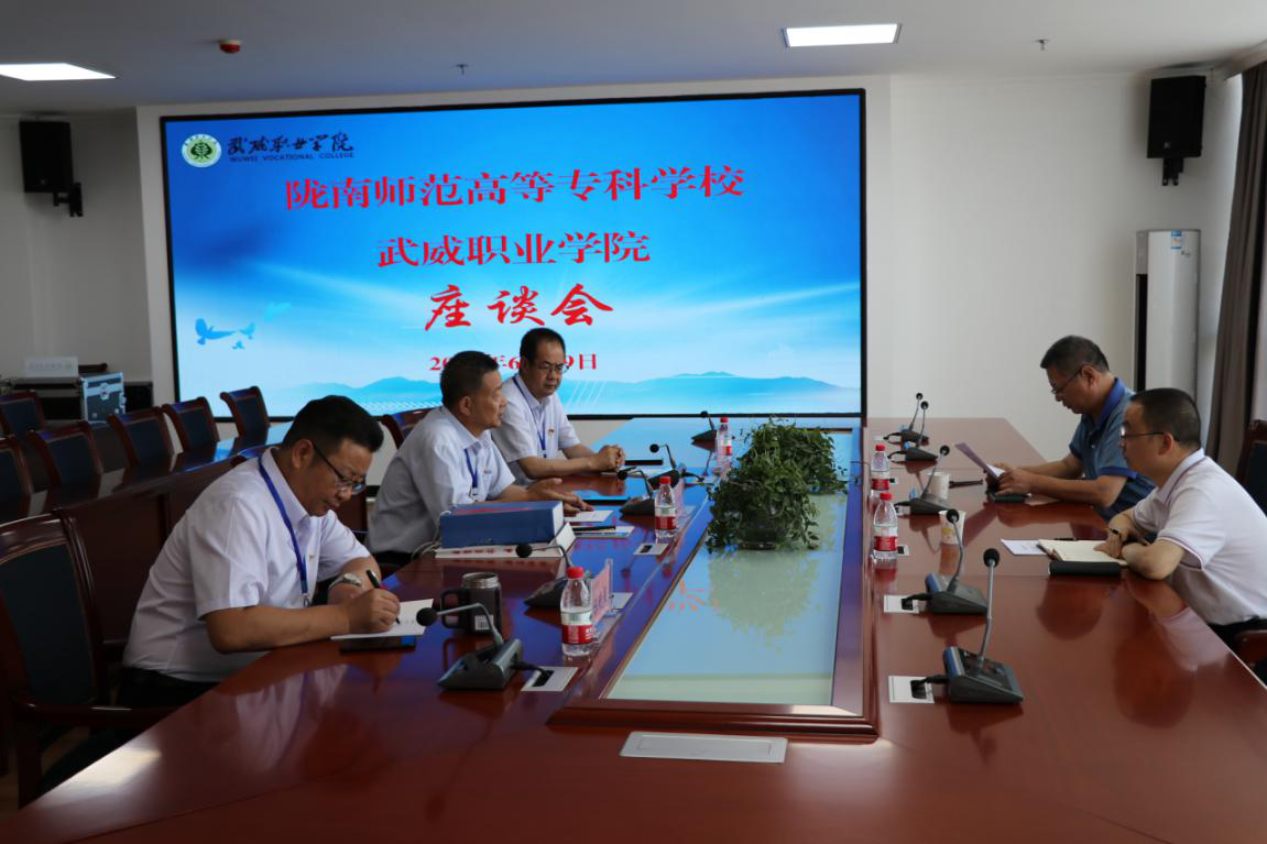 座談會上,趙明向余學軍一行詳細介紹了學院建設(shè)發(fā)展歷程、專業(yè)建設(shè)、師資隊伍建設(shè)、招生就業(yè)、科研服務(wù)、校企合作、與中國科學院合作辦學——中科低碳新能源技術(shù)學院建設(shè)和“雙高計劃”院校建設(shè)等情況。余學軍介紹了隴南示范高等??茖W校近年來發(fā)展與建設(shè)的基本情況,并就職業(yè)院校發(fā)展及管理經(jīng)驗進行了交流。