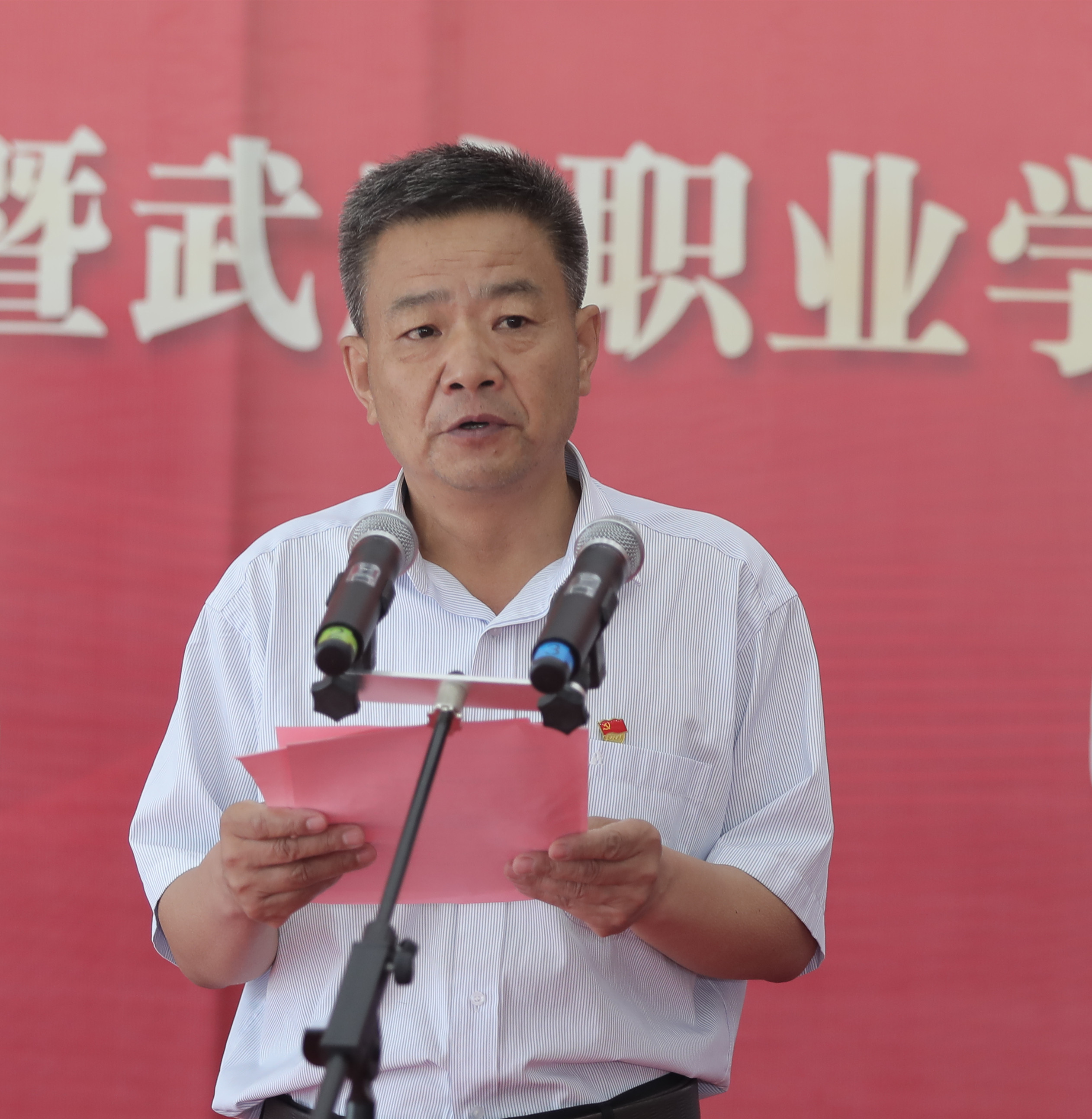 學(xué)院客座教授、涼州區(qū)政協(xié)原副主席王大臣先生在致辭中表示,值此慶祝建黨100周年之際,共同見(jiàn)證武威職業(yè)學(xué)院紅色文化藝術(shù)館開(kāi)館,心情非常激動(dòng)。武威職業(yè)學(xué)院是國(guó)家骨干高職院校,甘肅省優(yōu)質(zhì)校、“雙高計(jì)劃”建設(shè)院校,發(fā)揮著培育擔(dān)當(dāng)民族復(fù)興大任時(shí)代新人的作用。作為學(xué)院的客座教授,將自己“百年華章·紅色隴原——獻(xiàn)禮建黨一百周年書法展”的143副作品,毫無(wú)保留的全部捐贈(zèng)給學(xué)院,共建這個(gè)紅色文化藝術(shù)館,感到非常榮幸。全黨上下正在開(kāi)展黨史學(xué)習(xí)教育,紅色文化藝術(shù)館的建立,正是武威職業(yè)學(xué)院賡續(xù)紅色血脈、繼承光榮傳統(tǒng),以紅色文化鑄魂育人的生動(dòng)體現(xiàn)。希望老師們、同學(xué)們,能夠通過(guò)這些作品感悟紅色精神、汲取奮進(jìn)力量,在新時(shí)代新征程中唱響“立德樹(shù)人”的贊歌。