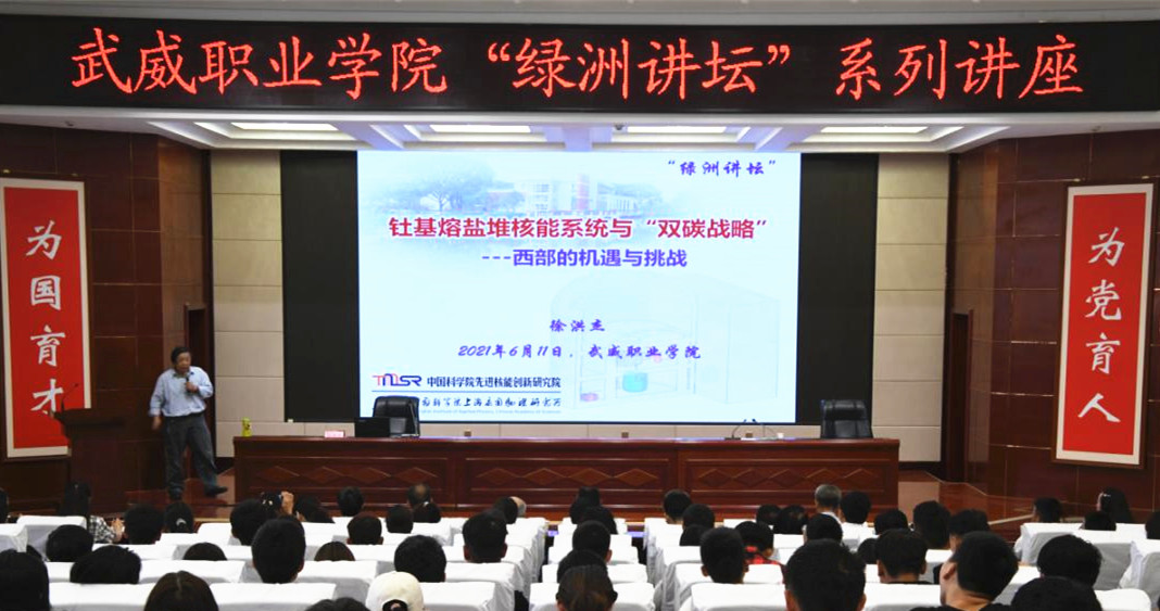 在全院上下深入開展黨史學(xué)習(xí)教育之際,為進(jìn)一步推進(jìn)省級“雙高計(jì)劃”建設(shè),促進(jìn)中科低碳新能源技術(shù)學(xué)院創(chuàng)新發(fā)展,深化學(xué)院教育教學(xué)改革,6月11日,學(xué)院第45期“綠洲講壇”開講,本次論壇邀請中國科學(xué)院上海應(yīng)用物理研究所研究員、博士生導(dǎo)師兼中國科學(xué)院先進(jìn)核能創(chuàng)新研究院院長徐洪杰為全院師生作題為《基于釷基熔鹽堆的風(fēng)光核儲多能融合系統(tǒng)——西部“雙碳戰(zhàn)略”之路的機(jī)遇和挑戰(zhàn)》的主旨報告。中國科學(xué)院上海應(yīng)用物理研究所黨委書記、副所長趙明華研究員,武威園區(qū)園區(qū)辦主任趙先堂,聯(lián)合辦學(xué)主管兼中科低碳新能源技術(shù)學(xué)院院長助理米麗娟博士出席,學(xué)院領(lǐng)導(dǎo)班子成員、中層干部、各院系師生代表共220余人參加報告會。報告會由學(xué)院黨委書記、院長趙明主持。