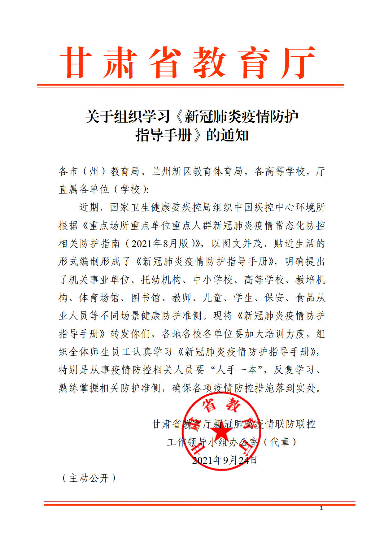 關(guān)于組織學(xué)習(xí)《新冠肺炎疫情防護(hù)指導(dǎo)手冊(cè)》的通知