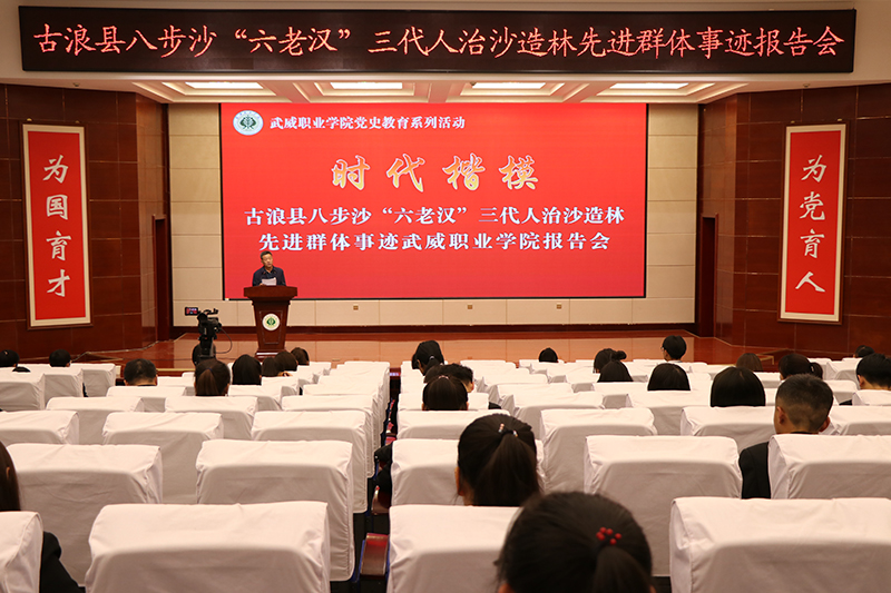 八步沙“六老漢”三代人治沙造林先進群體事跡報告團走進武威職業(yè)學院
