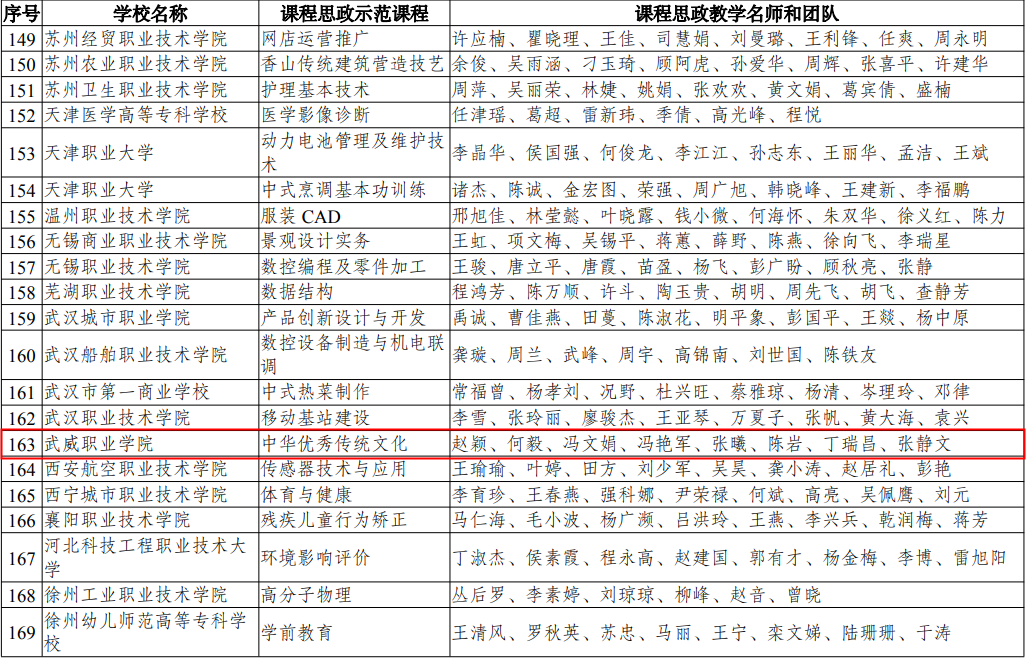 近日,教育部印發(fā)《教育部關(guān)于公布課程思政示范項目名單的通知》(教高函2021 7號),確定了首批699門課程思政示范課程和699個課程思政教學(xué)名師和團(tuán)隊、30個課程思政教學(xué)研究示范中心。我院《 中華優(yōu)秀傳統(tǒng)文化》課程、教學(xué)名師和團(tuán)隊成功入選教育部職業(yè)教育類課程思政示范課程、課程思政教學(xué)名師和團(tuán)隊。