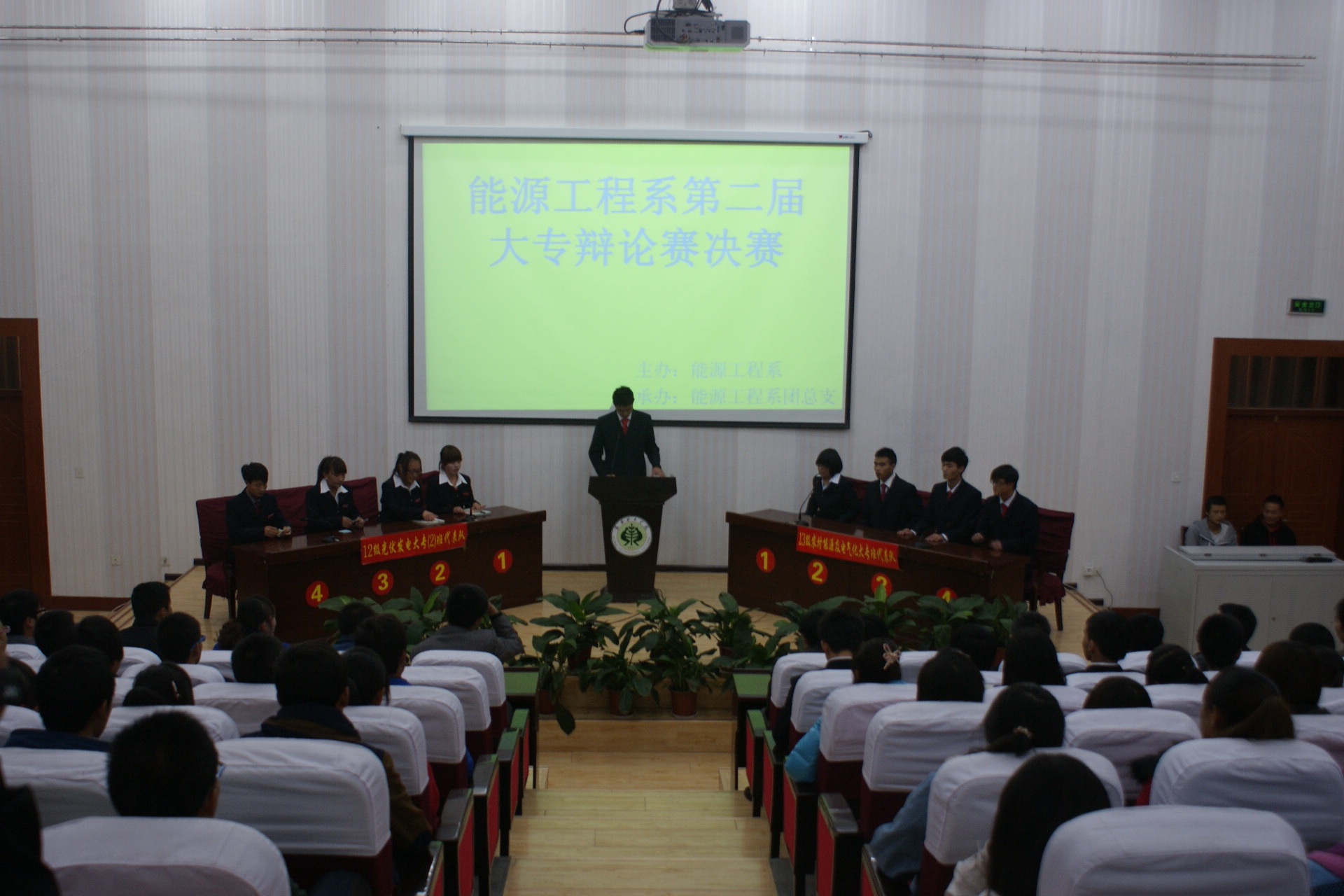11月10日晚,能源工程系在東階梯教室成功舉辦了能源工程系第二屆大專生辯論賽三、四名和冠、亞軍爭(zhēng)奪戰(zhàn)。能源工程系全體老師和大一、大二學(xué)生共270人參加了本次決賽。本次比賽在班級(jí)初賽的基礎(chǔ)上有8支代表隊(duì)的32名選手代表班級(jí)參加了全系比賽,經(jīng)過系部復(fù)賽、半決賽兩個(gè)階段的激烈競(jìng)爭(zhēng),最終有四支代表隊(duì)晉級(jí)決賽。
