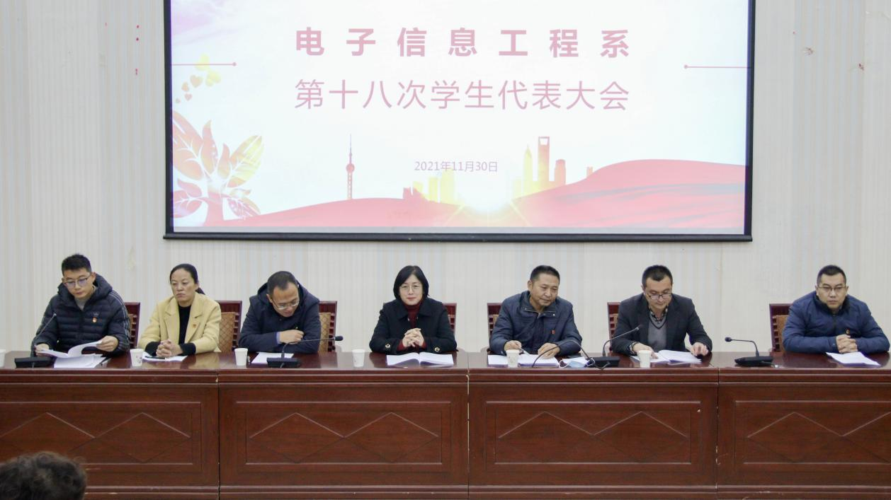 11月30日,電子信息工程系第十八次學(xué)生代表大會在明德樓階梯教室隆重召開。110名學(xué)生代表參會。