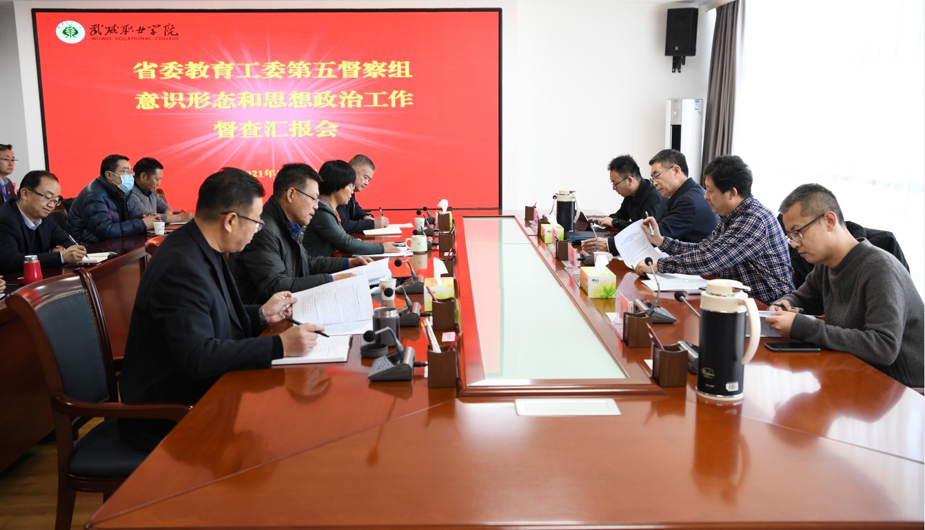 12月9日下午,由蘭州城市學院黨委委員、宣傳部部長,副校長、檢查組組長李慕堂,甘肅農業(yè)職業(yè)技術學院宣傳部部長、馬克思主義學院院長張勝聞、蘭州信息科技學院黨委宣傳部部長焦磊、蘭州城市學院黨委宣傳部宋福組成的省委教育工委第五檢查組來我院督查指導學院思想政治工作開展情況。黨委委員、副院長王永緒、何毅,紀委書記、監(jiān)察專員陳曉煜,黨委委員、副院長王守云陪同檢查。