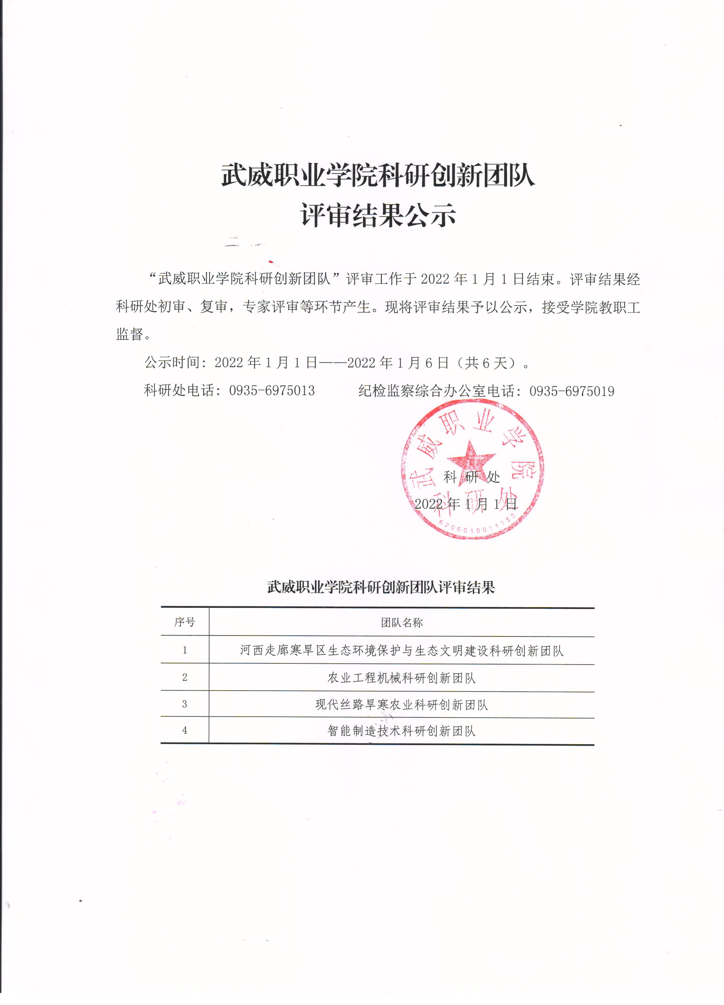 武威職業(yè)學(xué)院科研創(chuàng)新團(tuán)隊評審結(jié)果公示