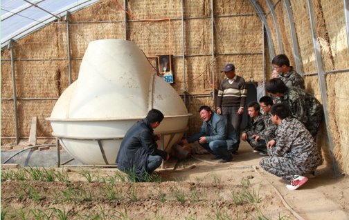能源工程系專業(yè)教師為農(nóng)戶就沼氣池產(chǎn)生的沼渣、沼液、增溫?zé)舢a(chǎn)生的二氧化碳當(dāng)做溫室內(nèi)蔬菜生長肥料與傳統(tǒng)化肥、農(nóng)藥相比產(chǎn)生的經(jīng)濟效益進行講解,指導(dǎo)農(nóng)戶充分利用沼氣池產(chǎn)生的沼渣、沼機及氣肥提高大棚經(jīng)濟效益。