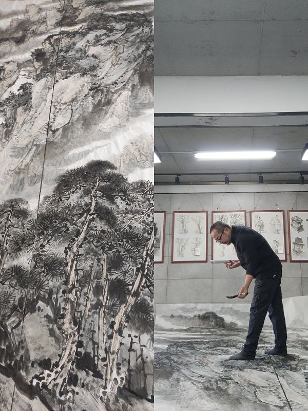 2022年初,為學(xué)院圖書(shū)館制作3米×7米的巨幅山水畫(huà)作品