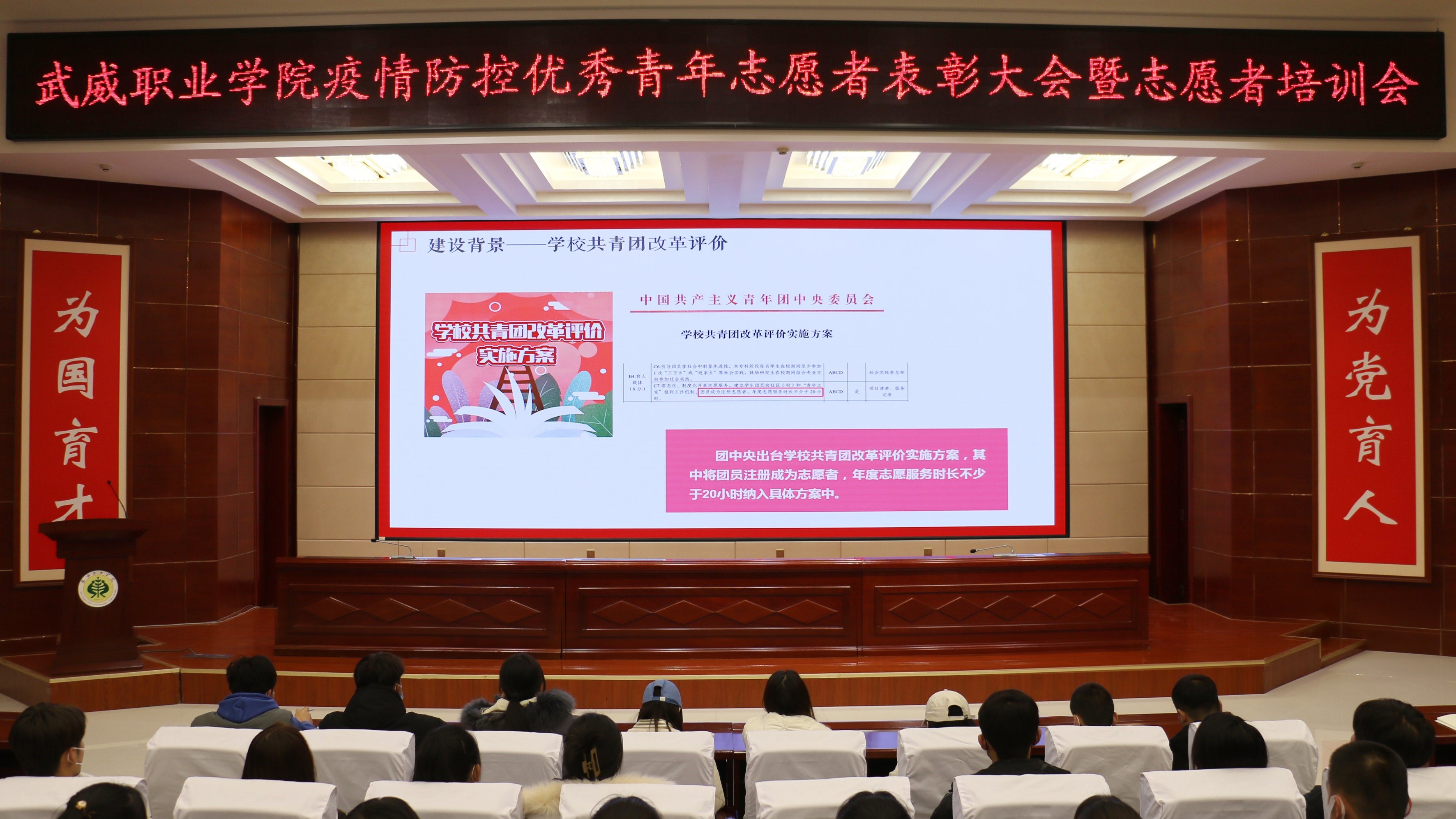 在表彰大會(huì)上,宣讀了《武威職業(yè)學(xué)院關(guān)于對(duì)疫情防控期間優(yōu)秀青年志愿者進(jìn)行通報(bào)表揚(yáng)的決定》,為疫情防控期間優(yōu)秀青年志愿者代表頒發(fā)了榮譽(yù)證書。