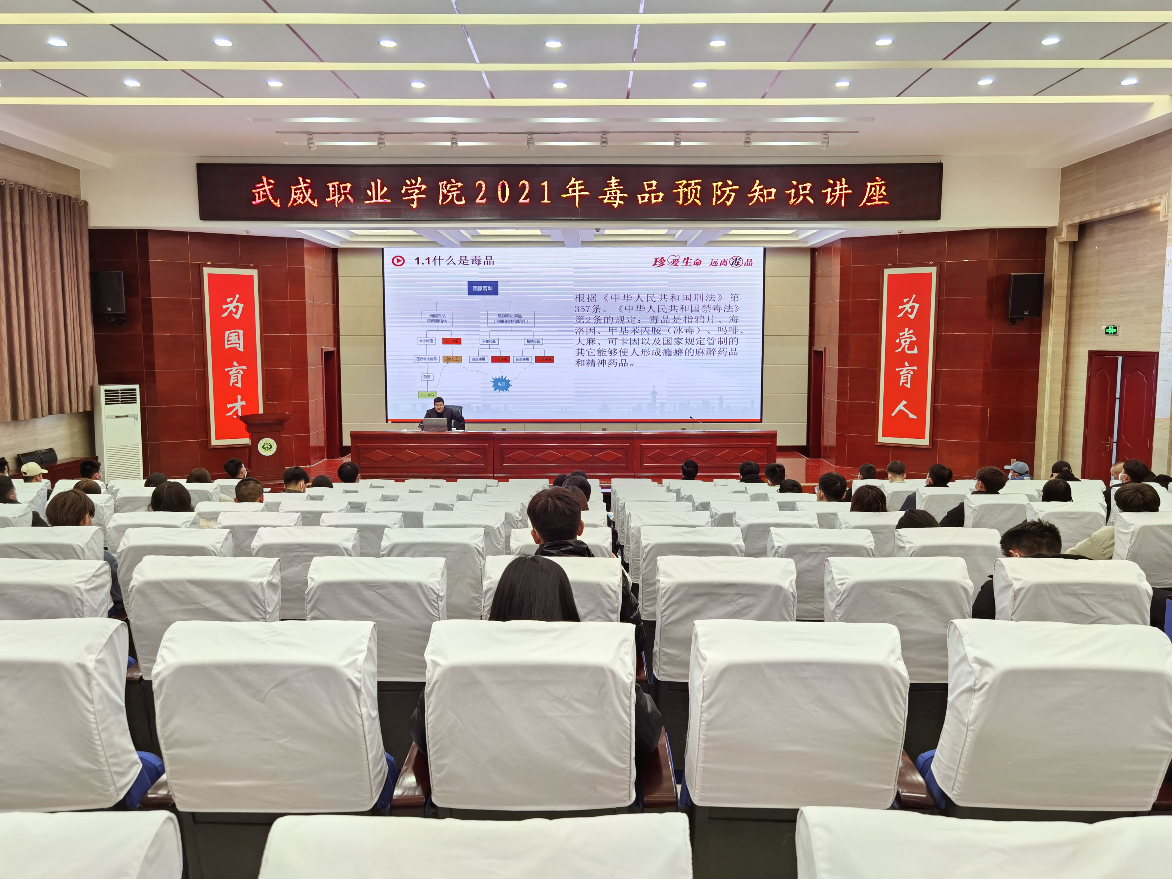 12月23日下午,學(xué)院邀請市禁毒委副主任、市政府副秘書長魯學(xué)才在菁英廳作了題為“健康人生,綠色無毒”毒品預(yù)防知識講座,學(xué)院副院長張開禮、武威市公安局禁毒支隊政委杜興林與師生一起聆聽了講座。