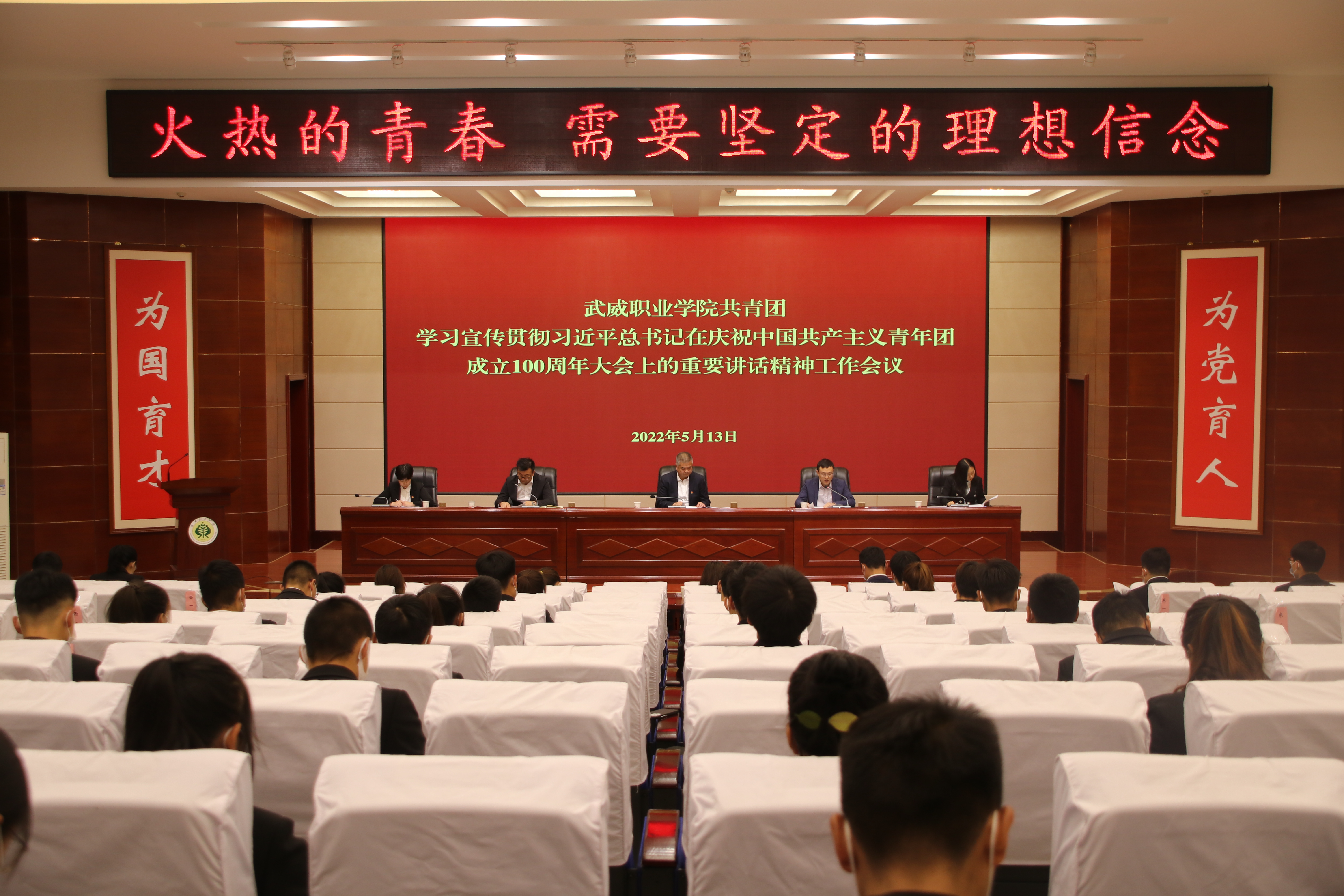 會(huì)議指出,學(xué)習(xí)宣傳貫徹習(xí)近平總書(shū)記在慶祝中國(guó)共青團(tuán)成立100周年大會(huì)上的重要講話(huà)精神,是學(xué)校各級(jí)團(tuán)組織和廣大團(tuán)員青年當(dāng)前和今后一段時(shí)期的首要政治任務(wù),要堅(jiān)持與黨同心、跟黨奮斗,學(xué)深悟透總書(shū)記重要講話(huà)精神,自覺(jué)踐行新時(shí)代共青團(tuán)的使命任務(wù),培養(yǎng)純潔擔(dān)當(dāng)?shù)膱F(tuán)員隊(duì)伍,成為走在時(shí)代前列的先進(jìn)組織,把學(xué)習(xí)成果體現(xiàn)到 “雙高計(jì)劃”學(xué)校建設(shè)和武威職業(yè)技術(shù)大學(xué)申辦工作的具體行動(dòng)上,以?xún)?yōu)異成績(jī)迎接黨的二十大勝利召開(kāi)。