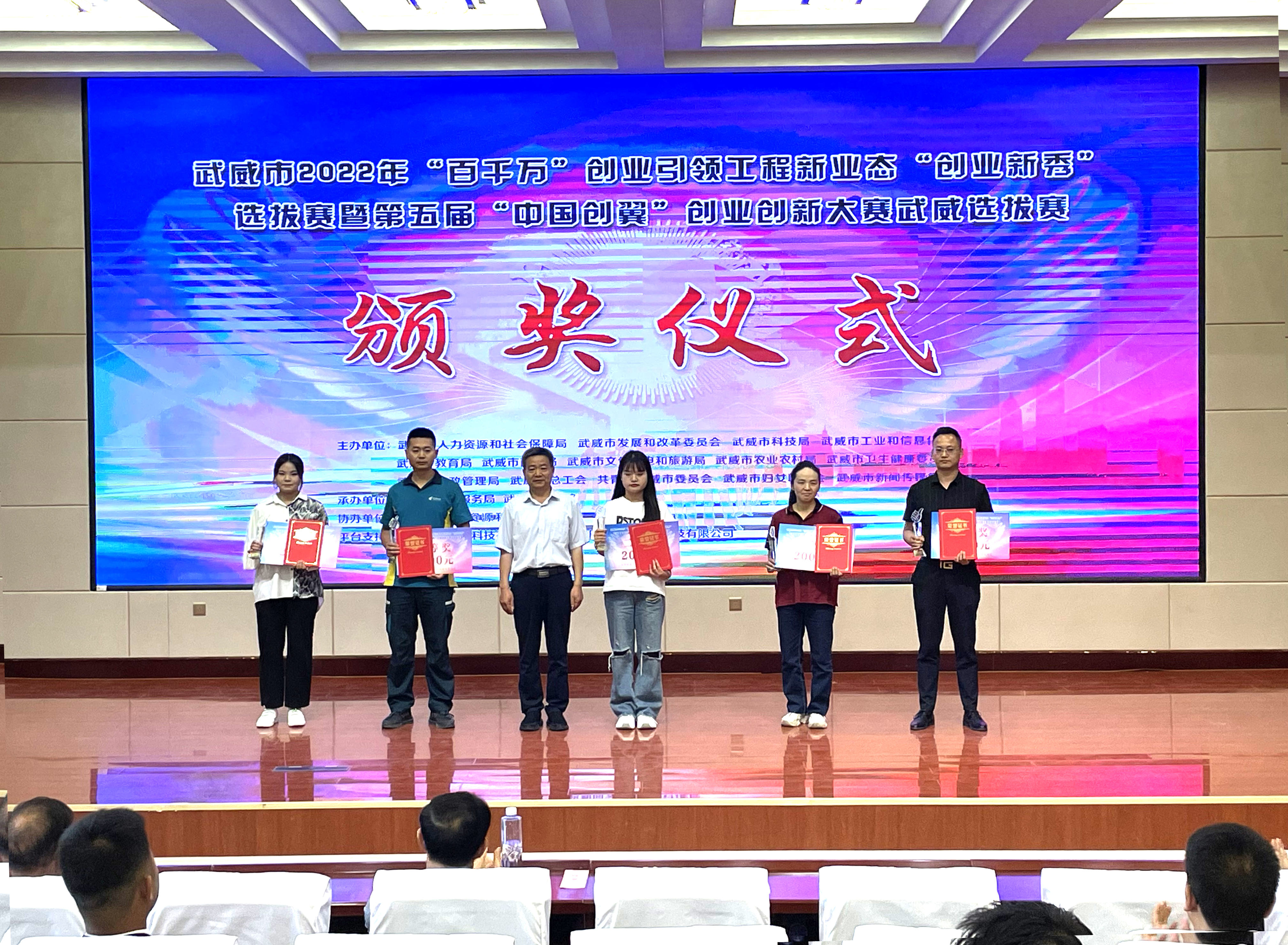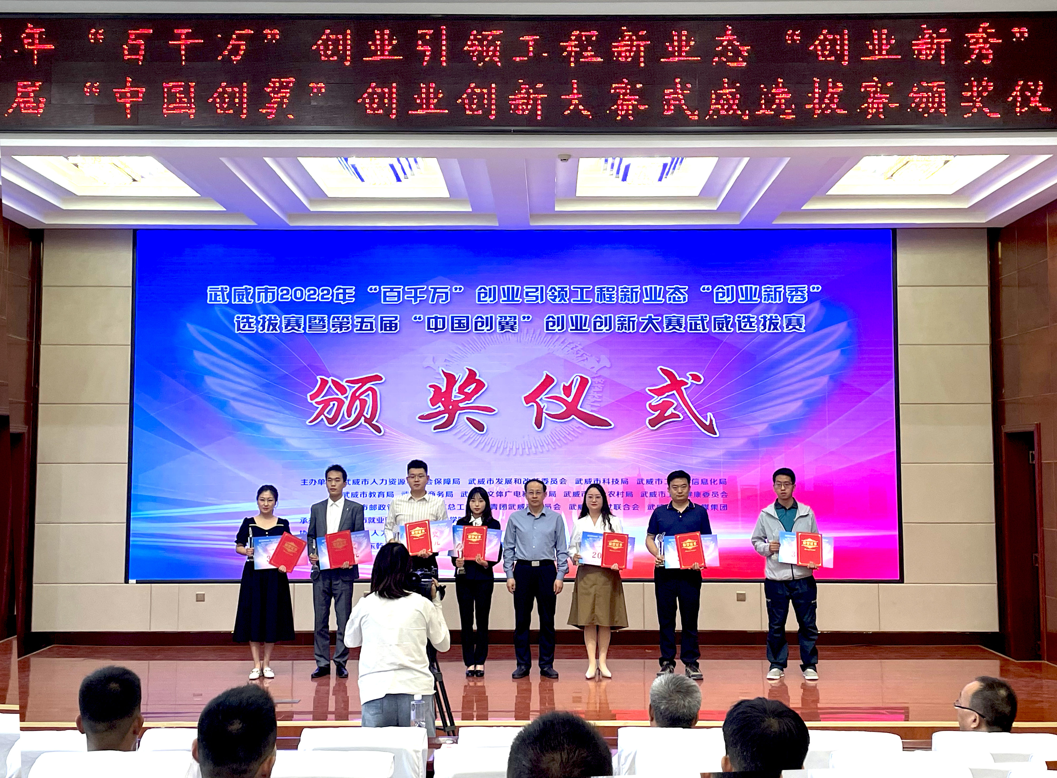 武威市 2022 年“百千萬”創(chuàng)業(yè)引領(lǐng)工程新業(yè)態(tài)“創(chuàng)業(yè)新秀”選拔賽暨第五屆“中國創(chuàng)翼”創(chuàng)業(yè)創(chuàng)新大賽武威選拔賽第二階段決賽及頒獎儀式在我校成功舉辦
