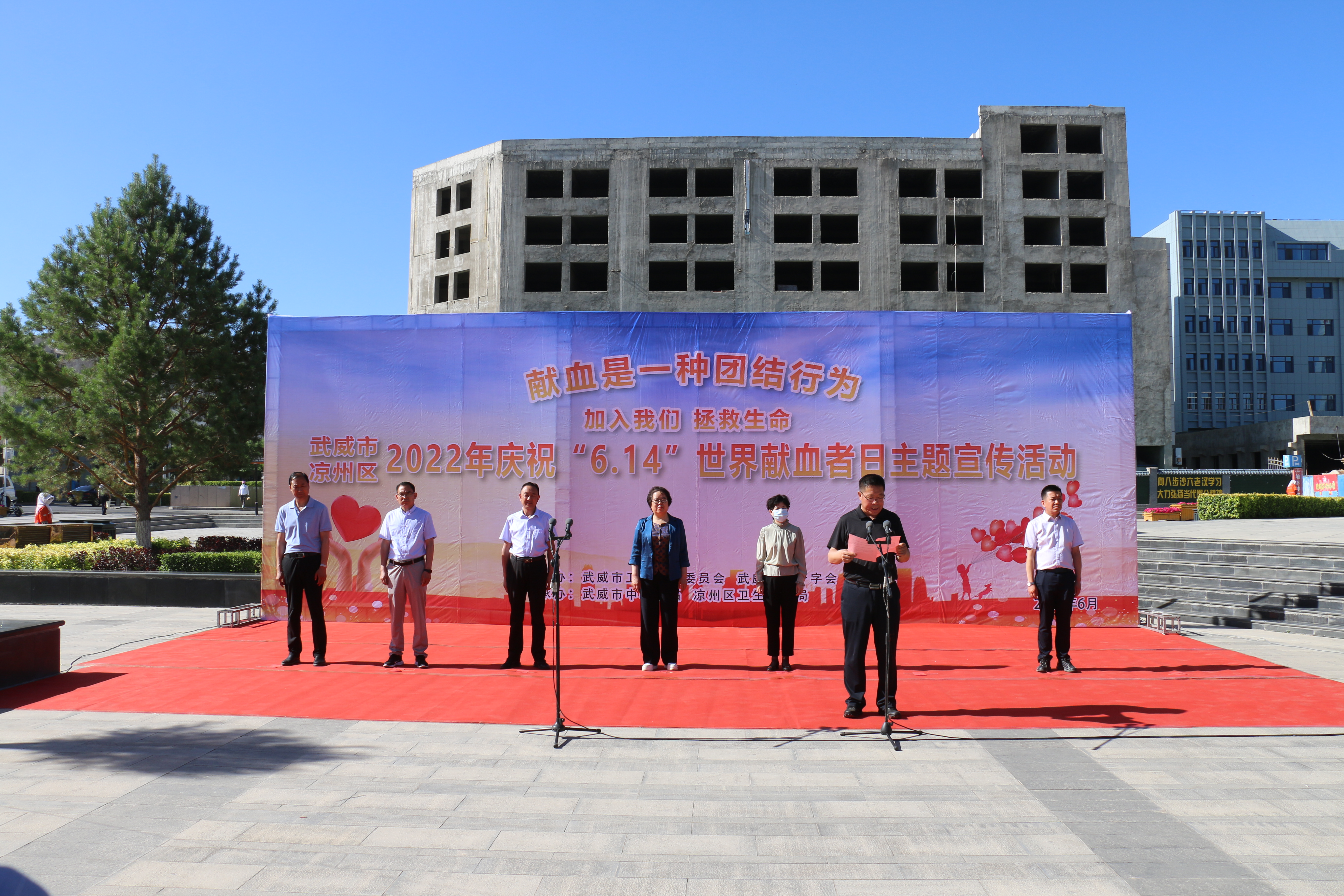 6月14日上午,由市衛(wèi)健委,市紅十字會主辦,市中心血站、涼州區(qū)衛(wèi)健局承辦的“獻血是一種團結(jié)行為。加入我們, 拯救生命”慶祝第十九個世界獻血者日主題宣傳活動在市文化廣場隆重舉行,市人大常委會副主任劉光美、市政協(xié)副主席趙曉暉、市政府副秘書長李懷金出席活動。學校黨委委員、副校長田迎春參加活動,并代表學校發(fā)言。