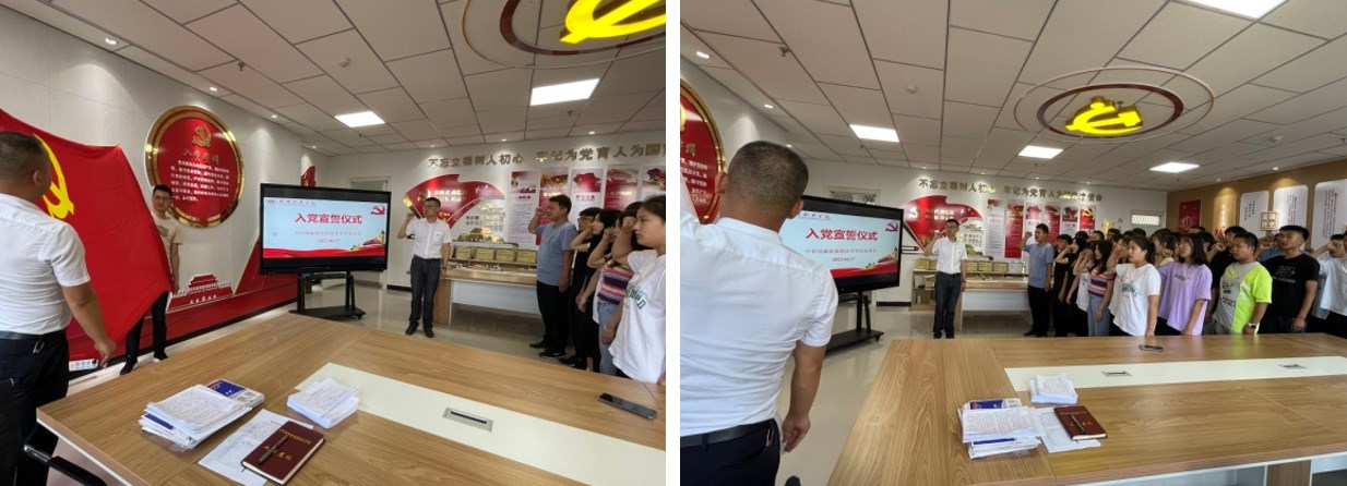 在“七一”來臨之際,為加強黨員教育、增強黨性觀念,中科低碳新能源技術學院黨總支于2022年6月27日下午在能源樓六樓黨員活動室組織開展了新黨員入黨宣誓儀式。學院黨總支全體黨員以及師生預備黨員參加宣誓儀式。