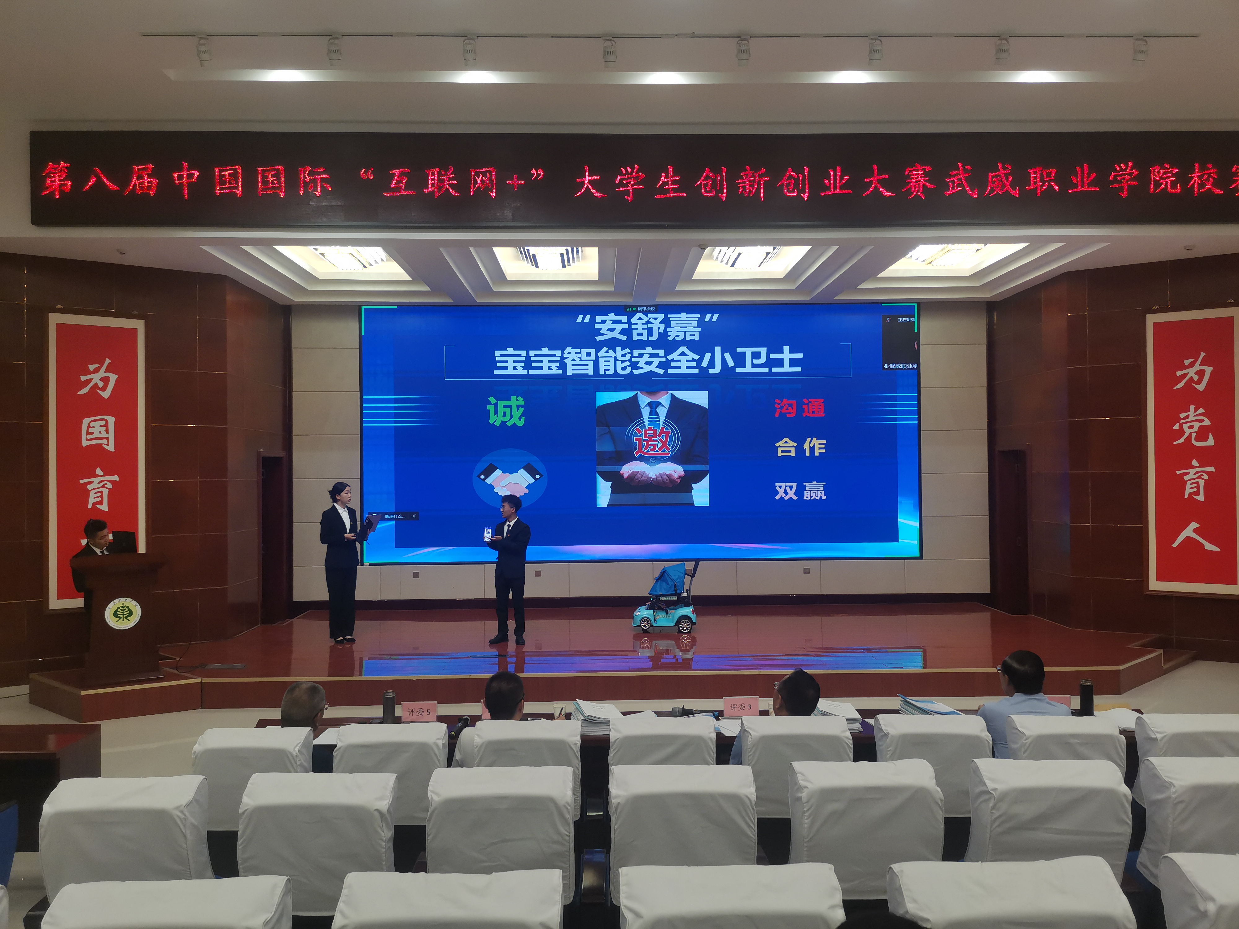 經(jīng)前期專家組初評共47個項目(高教主賽道3項,紅旅賽道14項,職教賽道30項)晉級校級決賽,分為三組分別在菁英廳和篤行樓一樓進(jìn)行答辯。本次大賽以線上線下混合式評審方式進(jìn)行。