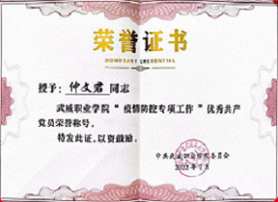 經(jīng)個(gè)人申報(bào)、學(xué)院推薦、學(xué)校審核,我院仲文君同志榮獲“疫情防控專項(xiàng)工作”優(yōu)秀共產(chǎn)黨員榮譽(yù)稱號(hào),李玉榮同志榮獲“雙高計(jì)劃建設(shè)項(xiàng)目專項(xiàng)工作”優(yōu)秀共產(chǎn)黨員榮譽(yù)稱號(hào),申賓德同志榮獲“申辦本科層次職業(yè)學(xué)校專項(xiàng)工作”優(yōu)秀共產(chǎn)黨員榮譽(yù)稱號(hào)。