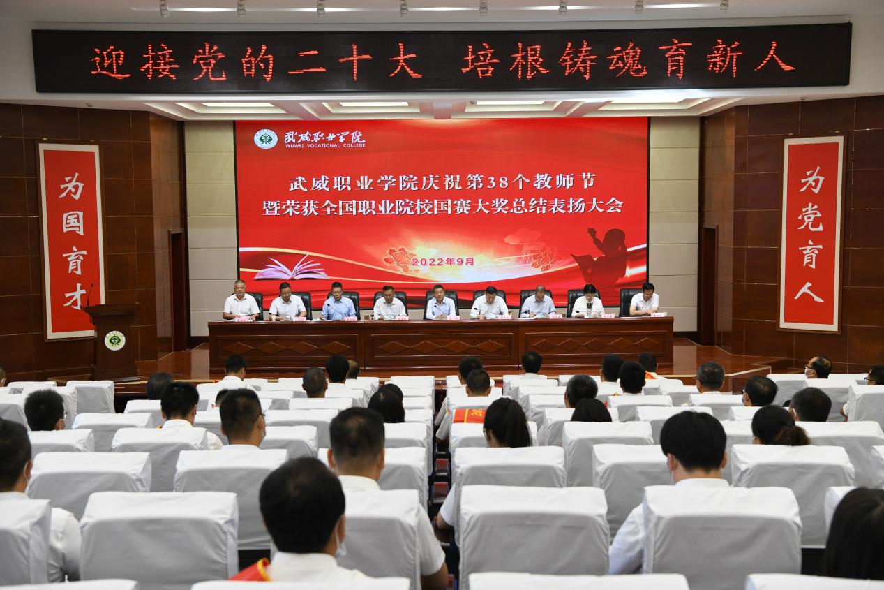 9月7日,學(xué)校慶祝第38個教師節(jié)暨榮獲全國職業(yè)院校國賽大獎總結(jié)表揚大會在菁英廳隆重舉行。中科院先進(jìn)核能創(chuàng)新研究院高級技術(shù)顧問、教育顧問,原華東理工大學(xué)副校長、武威職業(yè)學(xué)院中科低碳新能源技術(shù)學(xué)院院長、教授楊存忠,武威市教育局黨組成員、副局長李海峰,學(xué)校領(lǐng)導(dǎo)班子成員出席會議,中層以上干部、受表揚教師及學(xué)生代表參加會議。大會由黨委書記、校長趙明主持。
