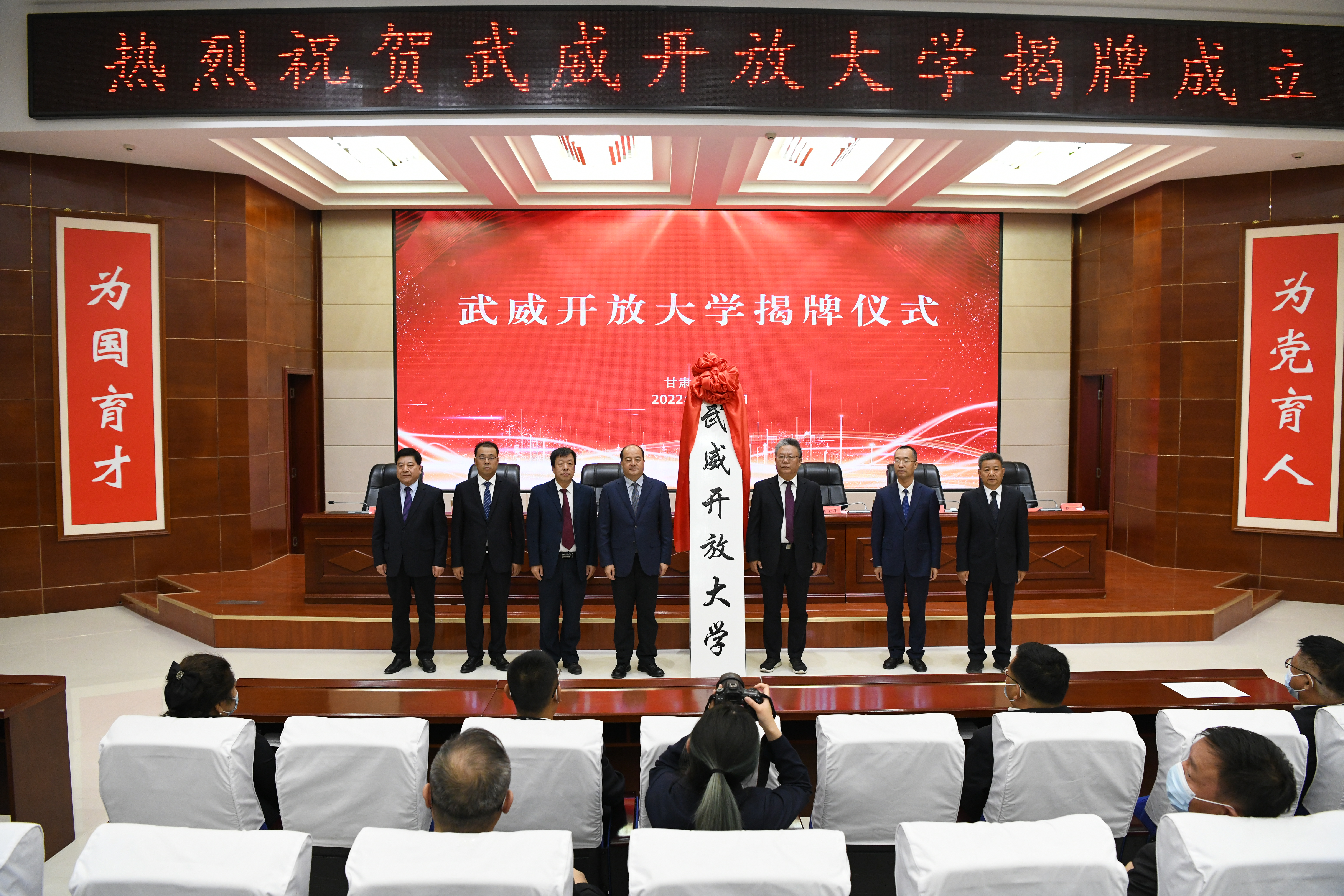 2022年9月28日,武威開放大學(xué)揭牌儀式在武威職業(yè)學(xué)院菁英廳順利舉行,標(biāo)志著有43年辦學(xué)歷程的甘肅廣播電視大學(xué)武威分校正式更名轉(zhuǎn)型為武威開放大學(xué),開啟了武威開放大學(xué)改革發(fā)展的新征程。
