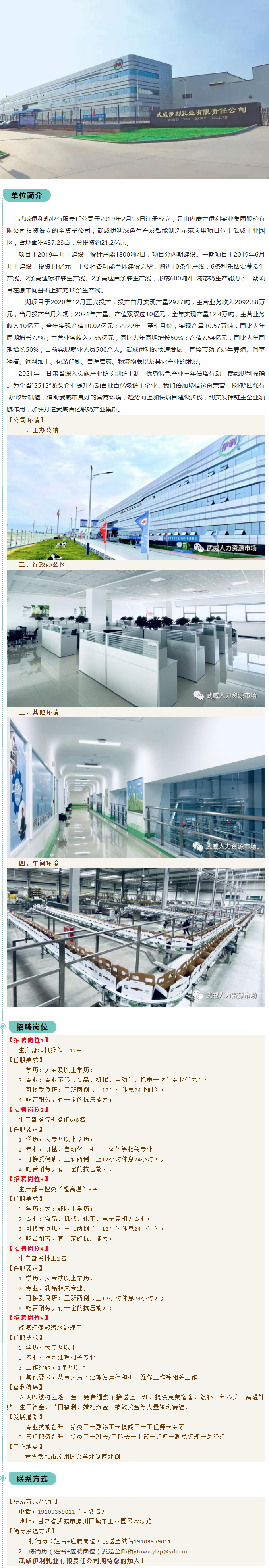 校企合作單位招聘動態(tài)——武威伊利乳業(yè)有限責任公司招聘公告