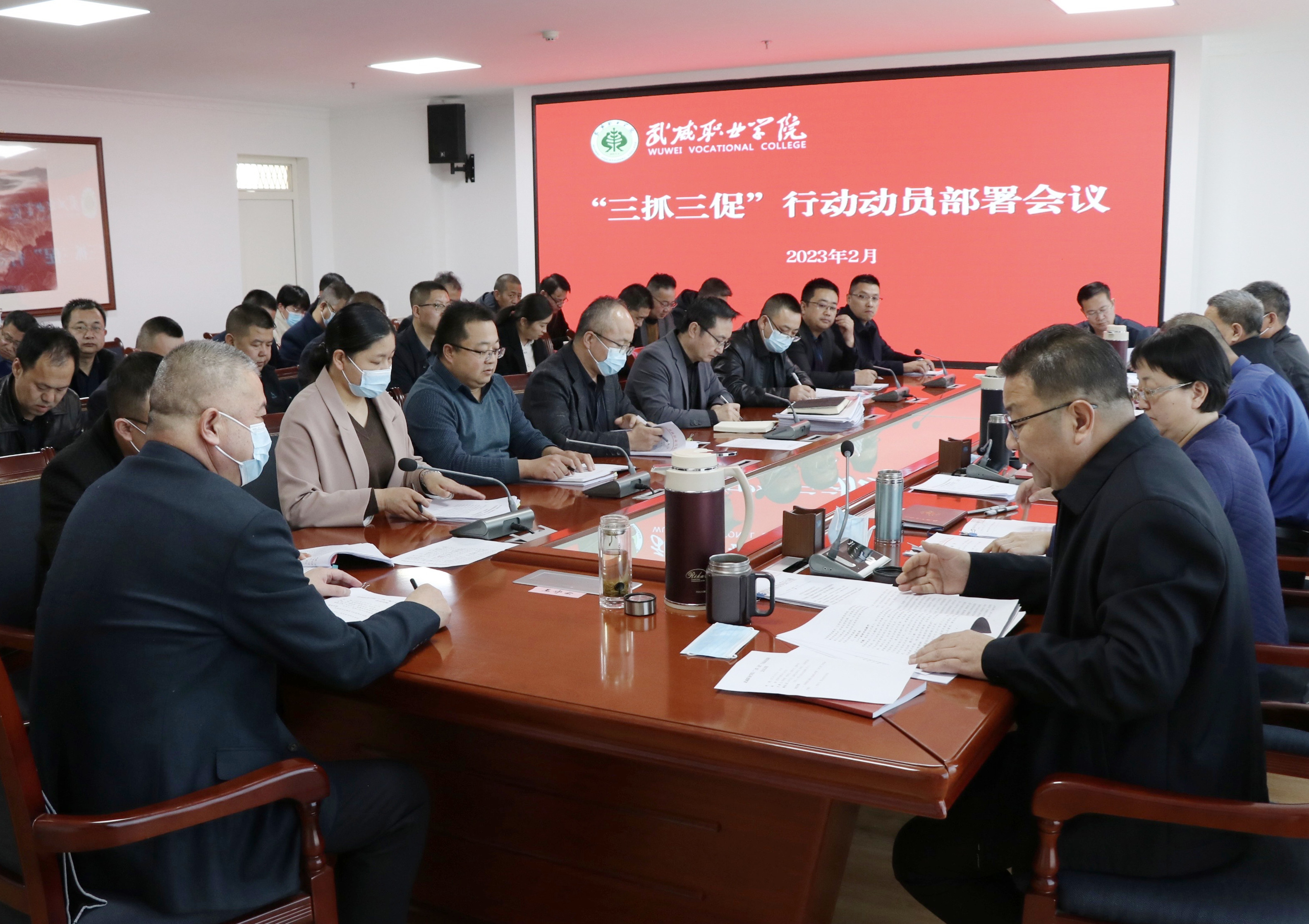 會議傳達學(xué)習(xí)了甘肅省、武威市和全省教育系統(tǒng)“三抓三促”行動動員部署會議精神,并對學(xué)校開展“三抓三促”行動進行安排部署。