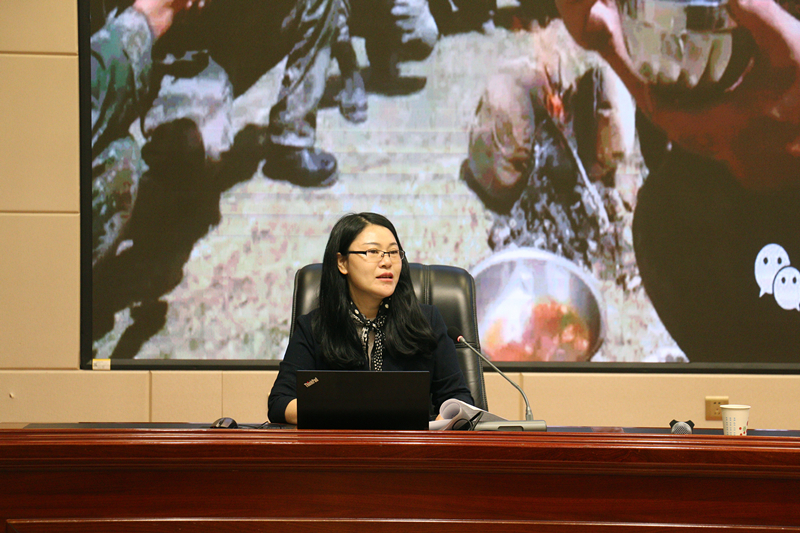 “對英雄的敬仰從不會(huì)隨著歷史的遠(yuǎn)去而減淡,祁發(fā)寶團(tuán)長的英雄事跡,點(diǎn)燃了百萬武威兒女的心?!笔腥诿襟w中心新媒體中心主任張尚梅將“英雄團(tuán)長”祁發(fā)寶衛(wèi)國戍邊先進(jìn)事跡娓娓道來。當(dāng)她講到“祁發(fā)寶左前額骨破裂,卻一把扯掉頭上的繃帶,想起身往前沖”的時(shí)候,聆聽講座的師生無不感動(dòng)。