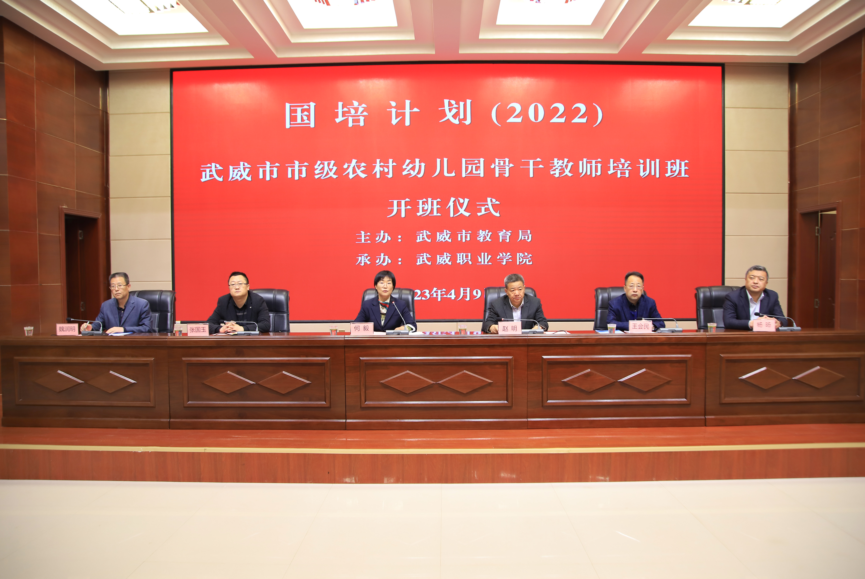 2023年4月9日上午,“國培計劃(2022)”武威市市級農(nóng)村幼兒園骨干教師培訓(xùn)班開班儀式在學(xué)院菁英廳舉辦,武威市教育局、武威職業(yè)學(xué)院領(lǐng)導(dǎo)及相關(guān)科室負責人參加開班儀式。