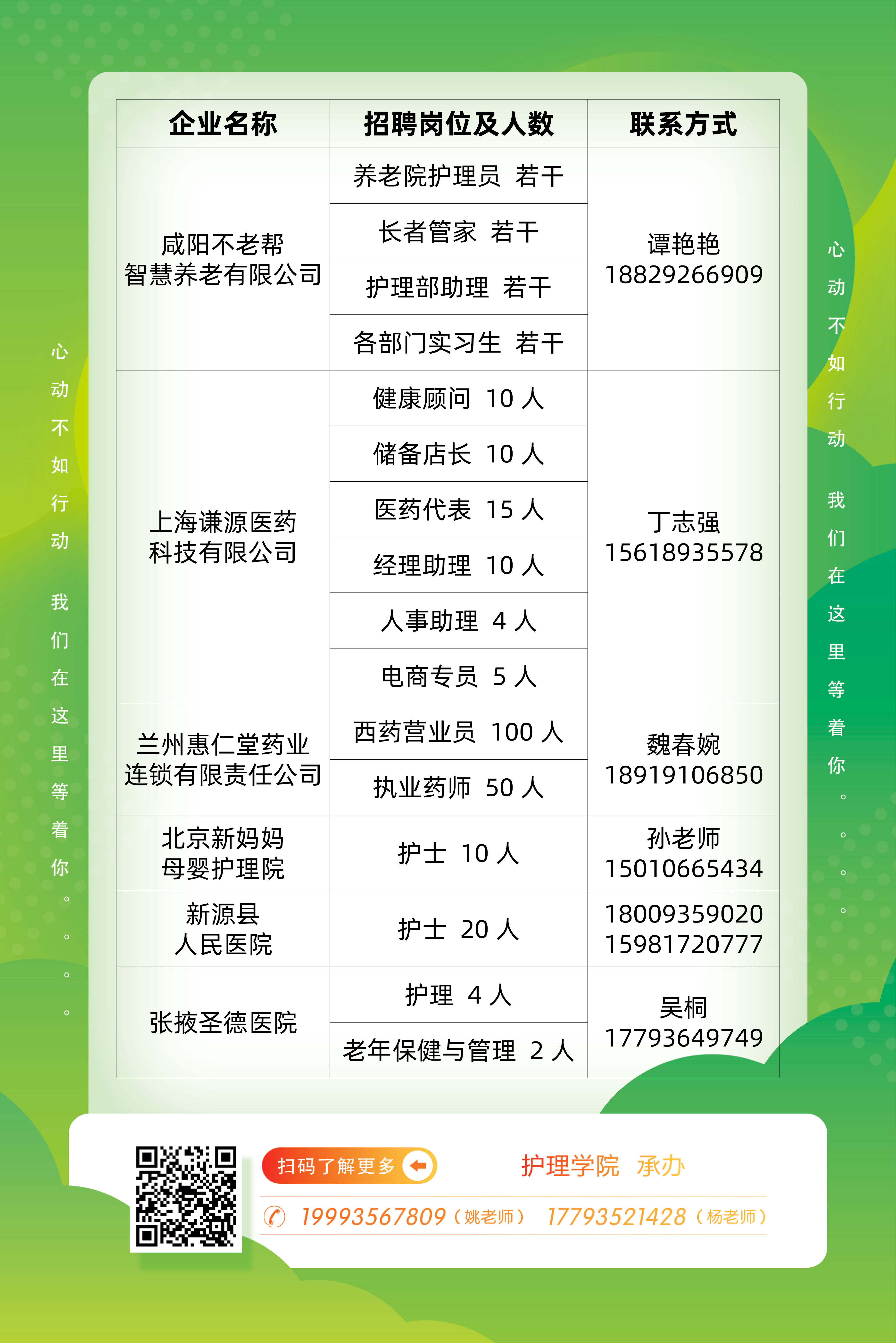 武威職業(yè)學(xué)院醫(yī)藥衛(wèi)生類專場春季招聘開始啦