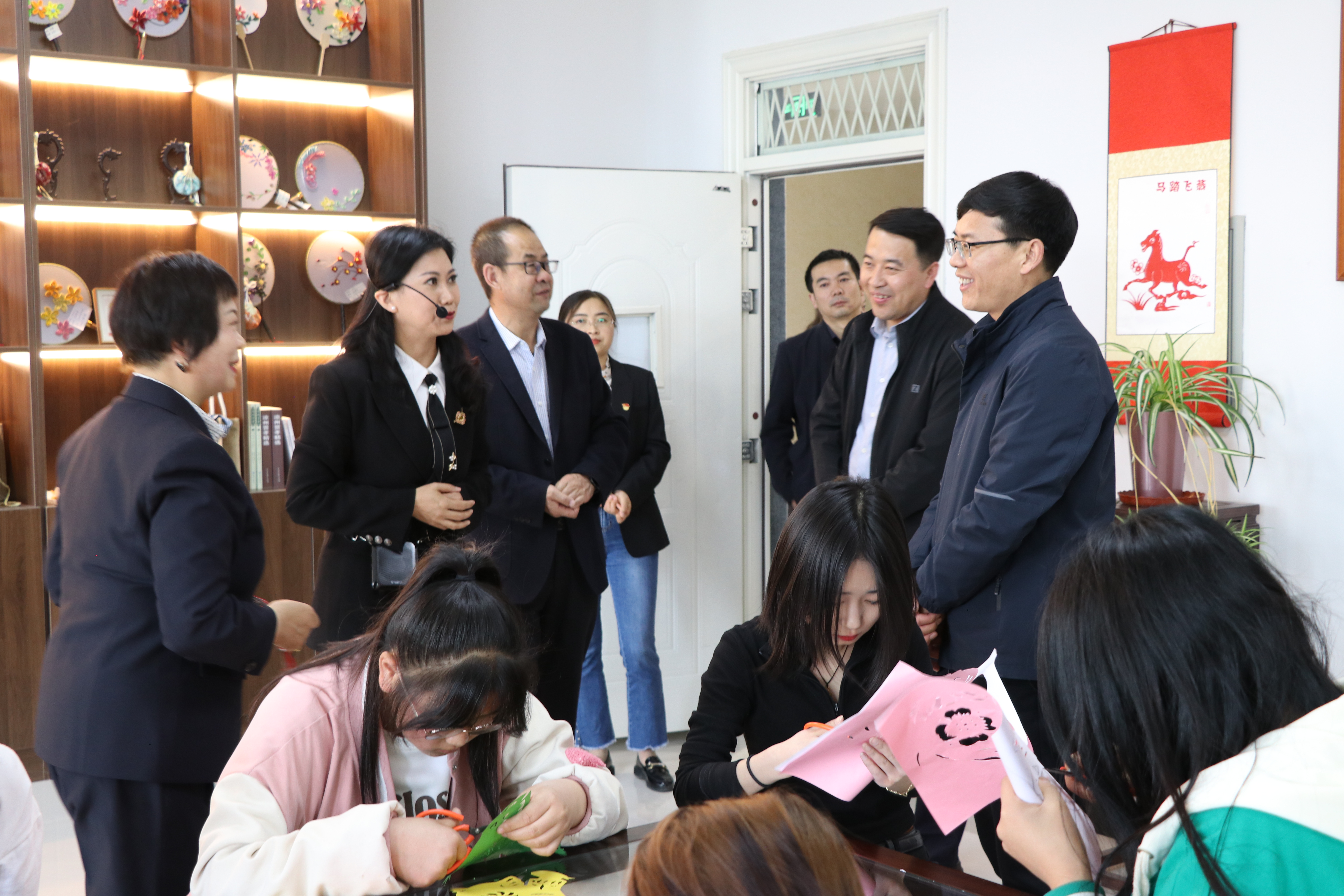 焦鵬寧一行先后深入學(xué)前教育專業(yè)實訓(xùn)室、馬克思主義學(xué)院、體育場、紅色文化藝術(shù)館、翟存祥思政課名師工作室、傳統(tǒng)文化體驗中心、非遺文化體驗中心、中科低碳新能源技術(shù)學(xué)院實訓(xùn)室等地實地調(diào)研參觀。翟存祥向焦鵬寧詳細(xì)介紹了學(xué)校近年來建設(shè)發(fā)展情況,重點對宣傳思想、馬克思主義學(xué)院建設(shè)、思想政治理論課教學(xué)、師資隊伍建設(shè)、課程思政改革及思政課名師工作室建設(shè)等情況進行了匯報。