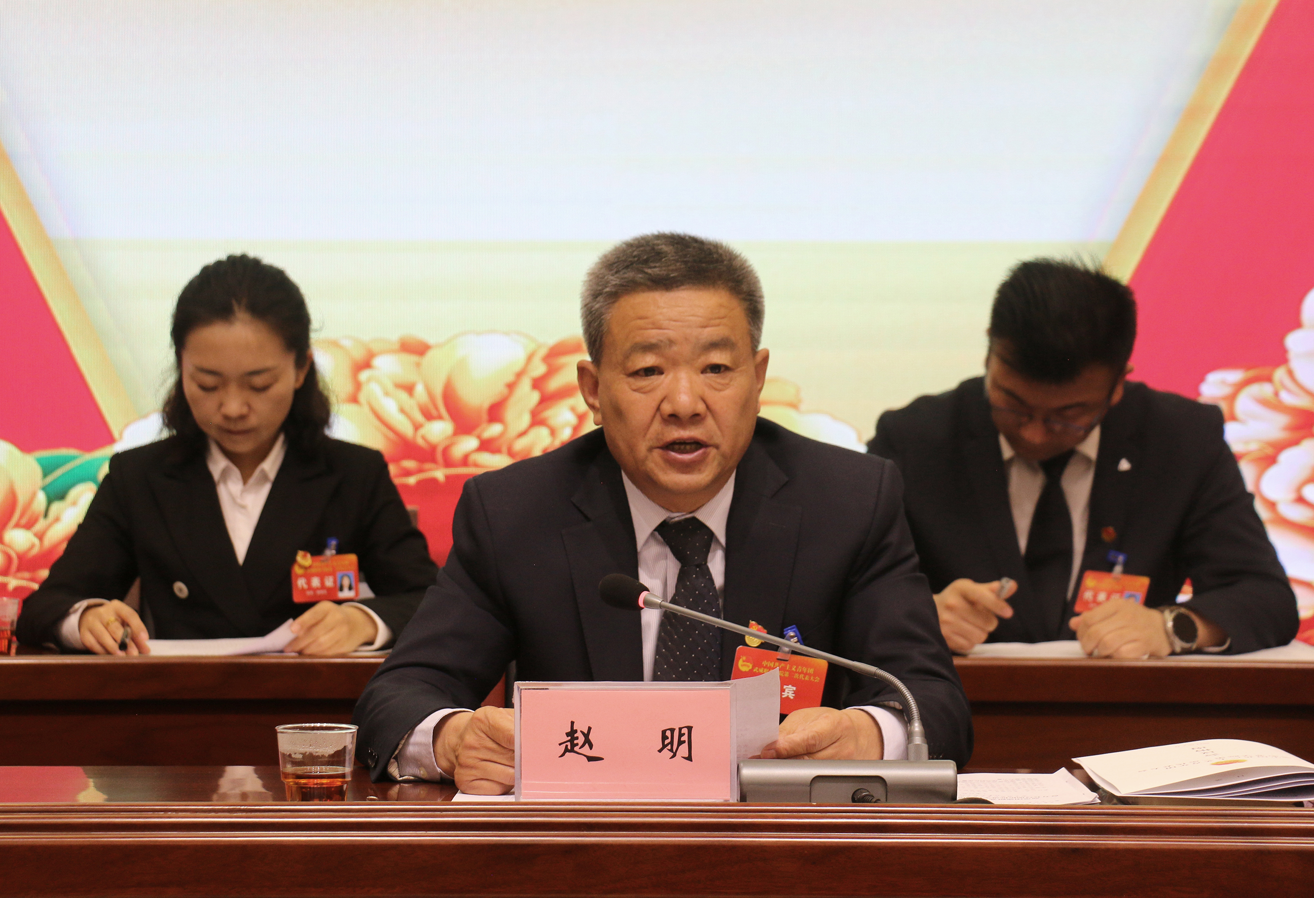 校團(tuán)委負(fù)責(zé)人高鵬堂代表共青團(tuán)武威職業(yè)學(xué)院第一屆委員會(huì)作了題為《高舉團(tuán)旗跟黨走 砥礪奮進(jìn)建新功 奮力書(shū)寫(xiě)加快推進(jìn)學(xué)校高質(zhì)量發(fā)展的青春答卷》的工作報(bào)告。