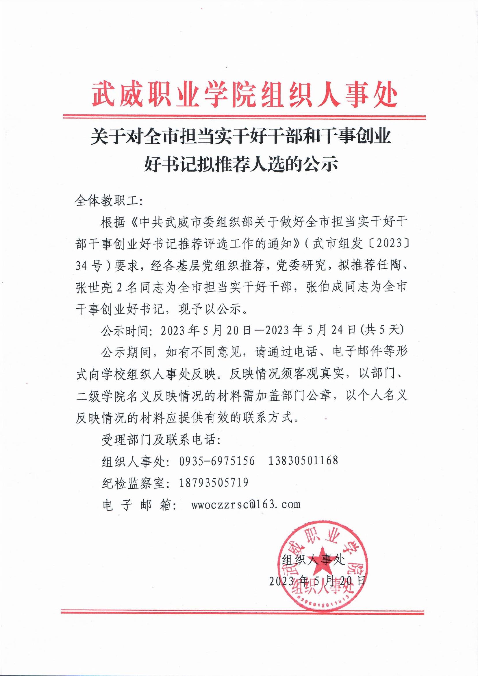 武威職業(yè)學(xué)院關(guān)于對(duì)第二批武威市領(lǐng)軍人才擬推薦人選的公示