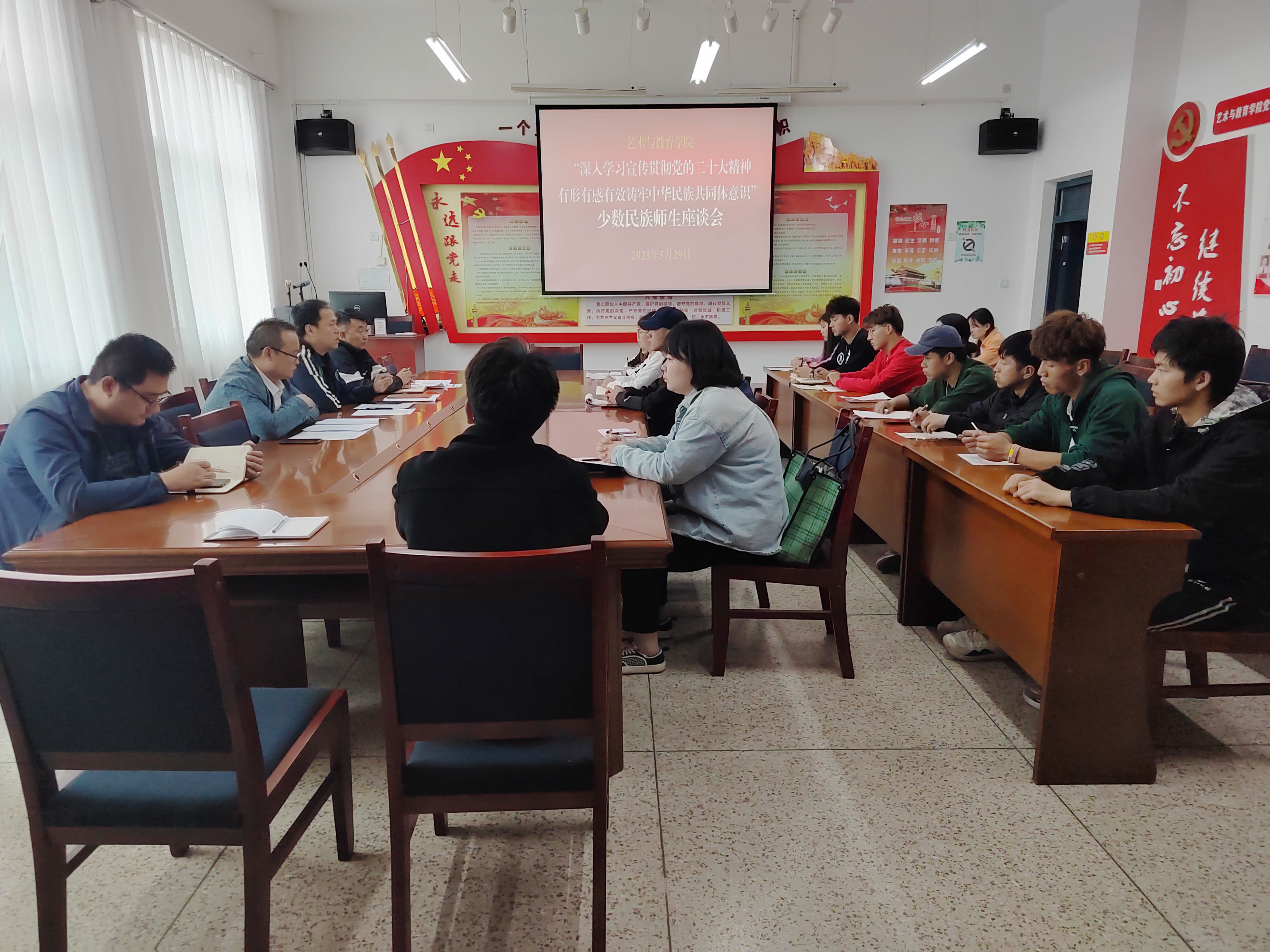2023年5月29日下午,學(xué)院召開2023年第20個(gè)民族團(tuán)結(jié)進(jìn)步宣傳月各民族教師生座談會,2022級各專業(yè)各民族學(xué)生代表,教師生代表和輔導(dǎo)員、班主任參加會議,會議由學(xué)院黨總支書記王政主持。
