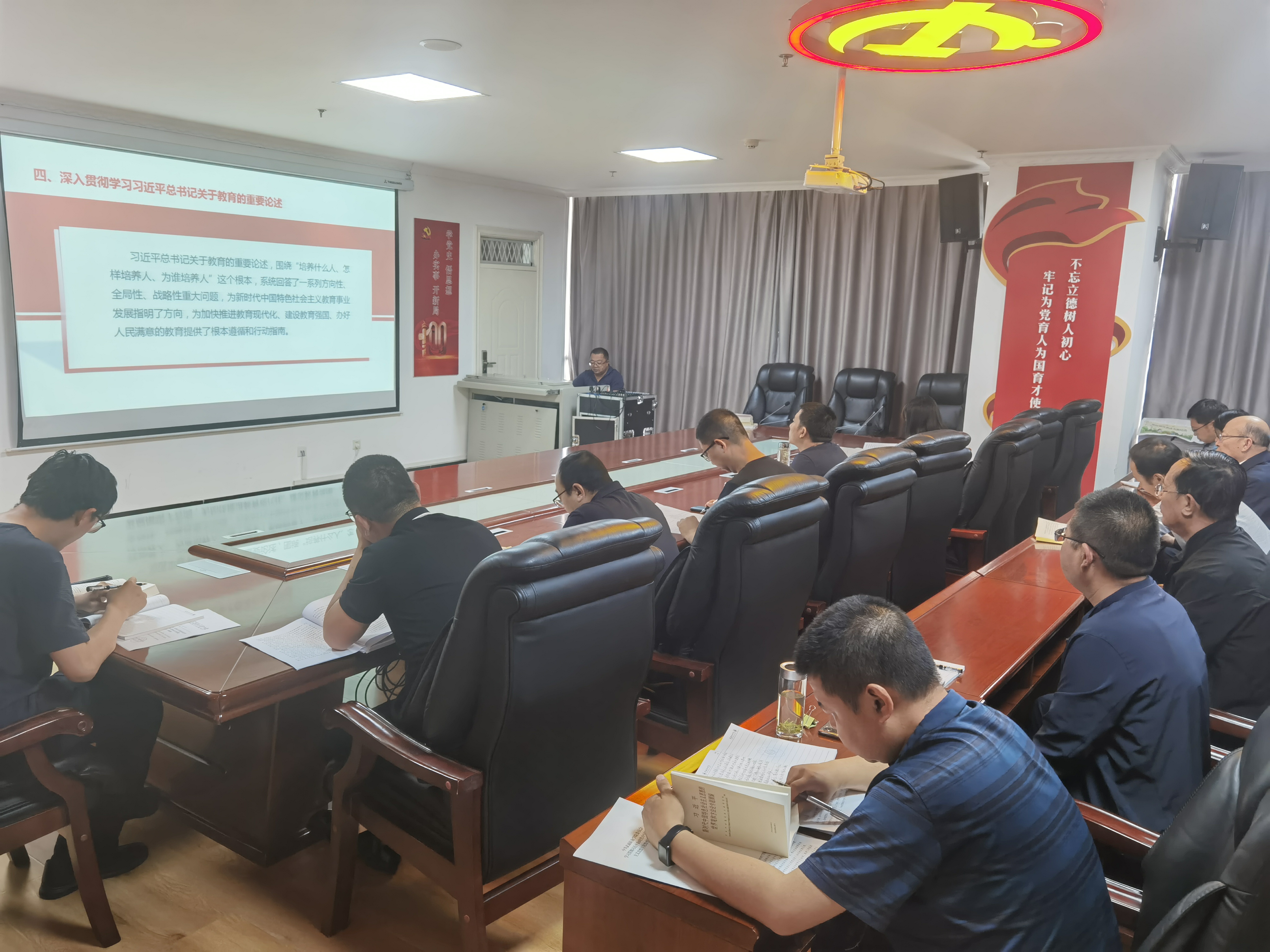 5月30日下午,行政第二黨支部書(shū)記魏全民在810會(huì)議室以《學(xué)習(xí)新思想 奮進(jìn)新征程 建功新時(shí)代》為題,并結(jié)合個(gè)人學(xué)思踐悟和教育教學(xué)工作實(shí)際,講授學(xué)習(xí)貫徹習(xí)近平新時(shí)代中國(guó)特色社會(huì)主義思想主題教育專(zhuān)題黨課,行政第二黨支部全體黨員參加。