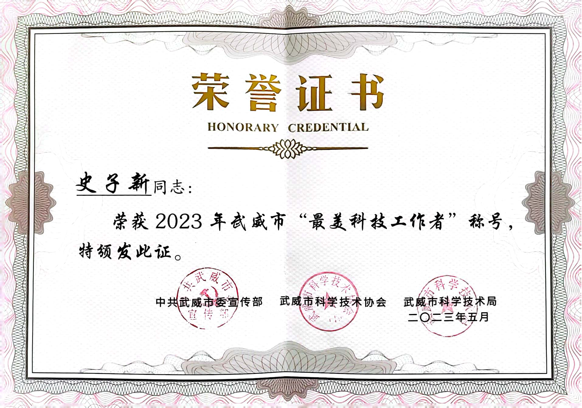 在2023年武威市“全國科技工作者日”活動中,我校教師史子新榮獲武威市“最美科技工作者”稱號。5月30日,在第7個“全國科技工作者日”來臨之際,武威市 “全國科技工作者日”座談會在市政府北一樓會議室召開。我校黨委委員、副校長田迎春應邀參加了會議,史子新作為“最美科技工作者”代表進行了交流發(fā)言。